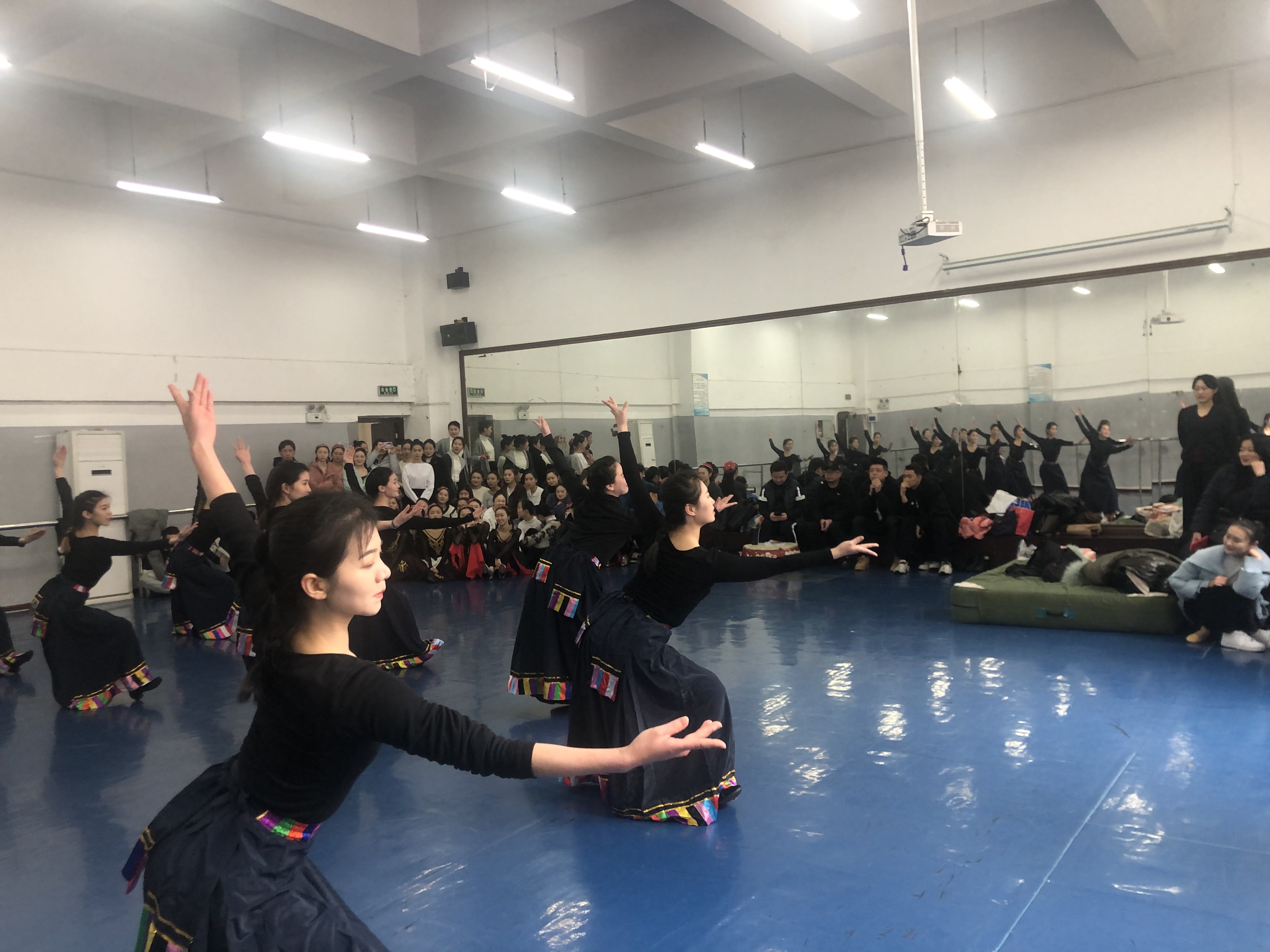 在招聘过程中,贵州演艺集团副总经理田应斌给大家讲解了贵州文化演艺集团的优势,表示可以给毕业生提供一份工作机会,在工作中不仅可以在舞台上尽情展现自己,而且可以使自己的专业在工作中充分发挥。最后,编导陈诗菲带领了毕业班男生展现了一段现代舞。