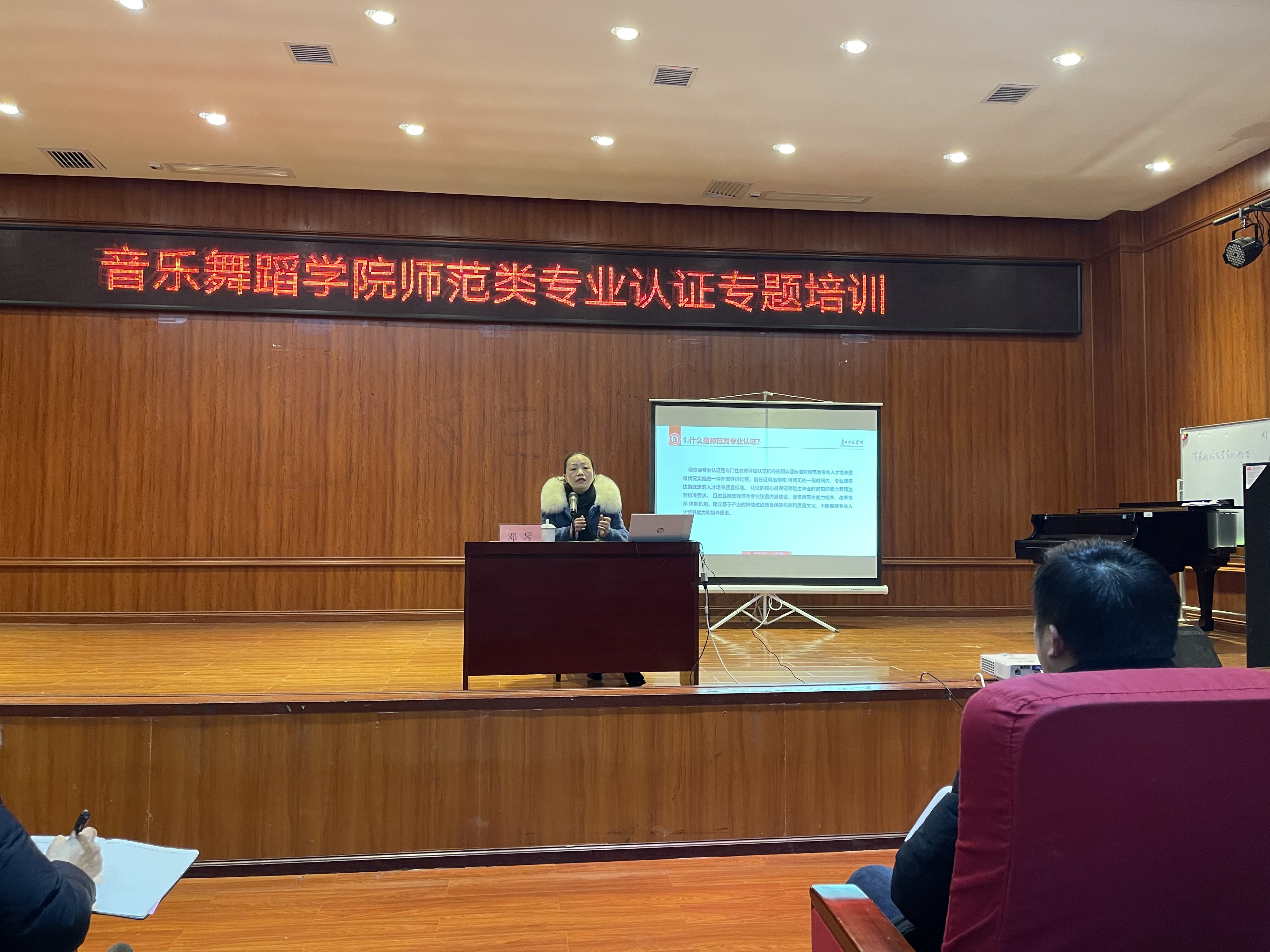 2021年1月4日下午,77779193永利官网集团在六楼音乐厅开展师范类认证学习,有幸邀请到质量评估办公室邓琴老师为我院全体教职工深入讲解师范类认证的学习。