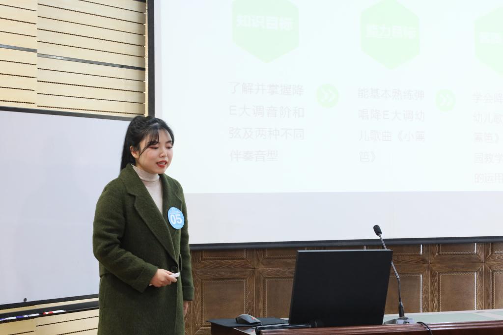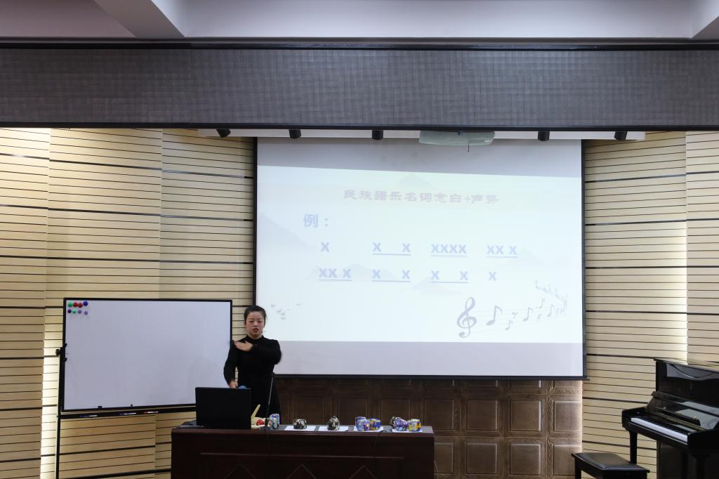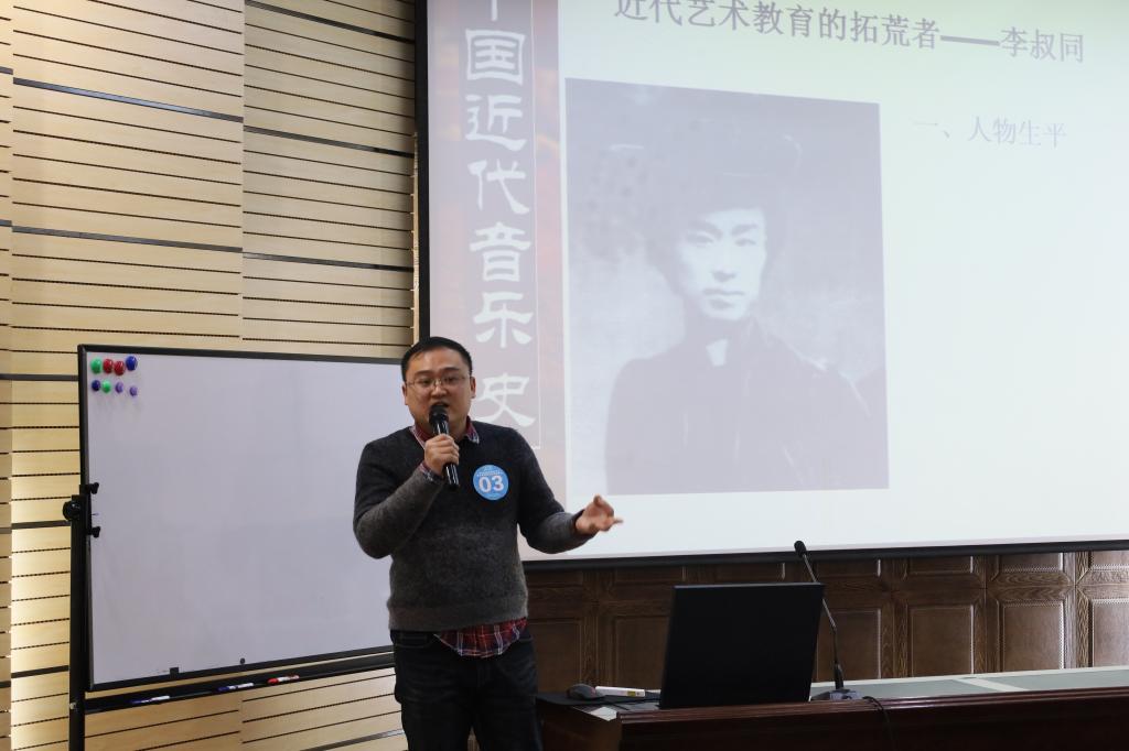 本次优质课评比包括四部分:教案设计、上课、说课、课后反思,其中执教上课是评比的重头戏,要求课堂中合理使用多媒体,展示扎实的基本功,注重学生的合作意识和实践能力的培养。各位参赛老师集思广益、精心准备,向评委老师们展示了精彩的课程,授课内容丰富多彩,如奥尔夫音乐教学法--趣味节奏对应、李叔同及其爱国歌曲的创作、民族民间音乐歌等多种授课内容,各位参赛老师教态亲切,语速适中,贴合学生的心理特点,教学活动丰富,激发了各位同学对课程的喜爱。