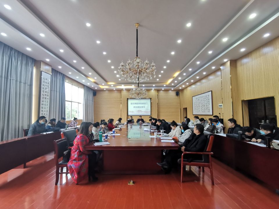 12月18日,77779193永利官网集团在六楼会议室集中开展政治理论学习,专题学习中共贵州省委十二届八次全会精神。全体教职工参加了学习,学院党委书记付巧主持学习活动。