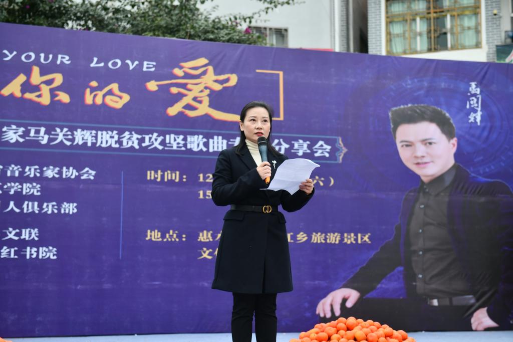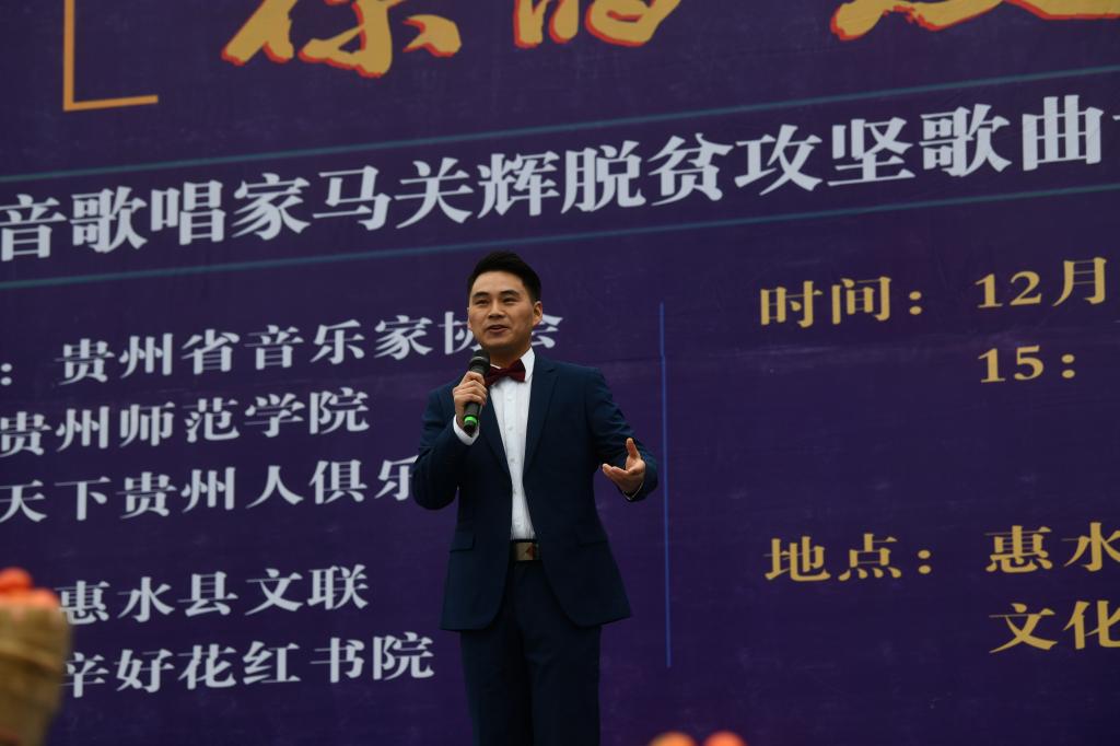12月12日,由永利集团、贵州省音乐家协会、天下贵州人俱乐部主办的我校77779193永利官网集团院长、男高音歌唱家马关辉《你的爱》脱贫攻坚歌曲专辑分享会在叶辛好花红书院举行。惠水县政协主席黄俐伶,惠水县委常委、县委宣传部长孙玲,惠水县人民政府副县长王龙菊,天下贵州人俱乐部秘书长、叶辛好花红书院院长刘学文,惠水县文联主席李建果参加活动。我校党委委员、副校长邹晓青出席活动并致辞。