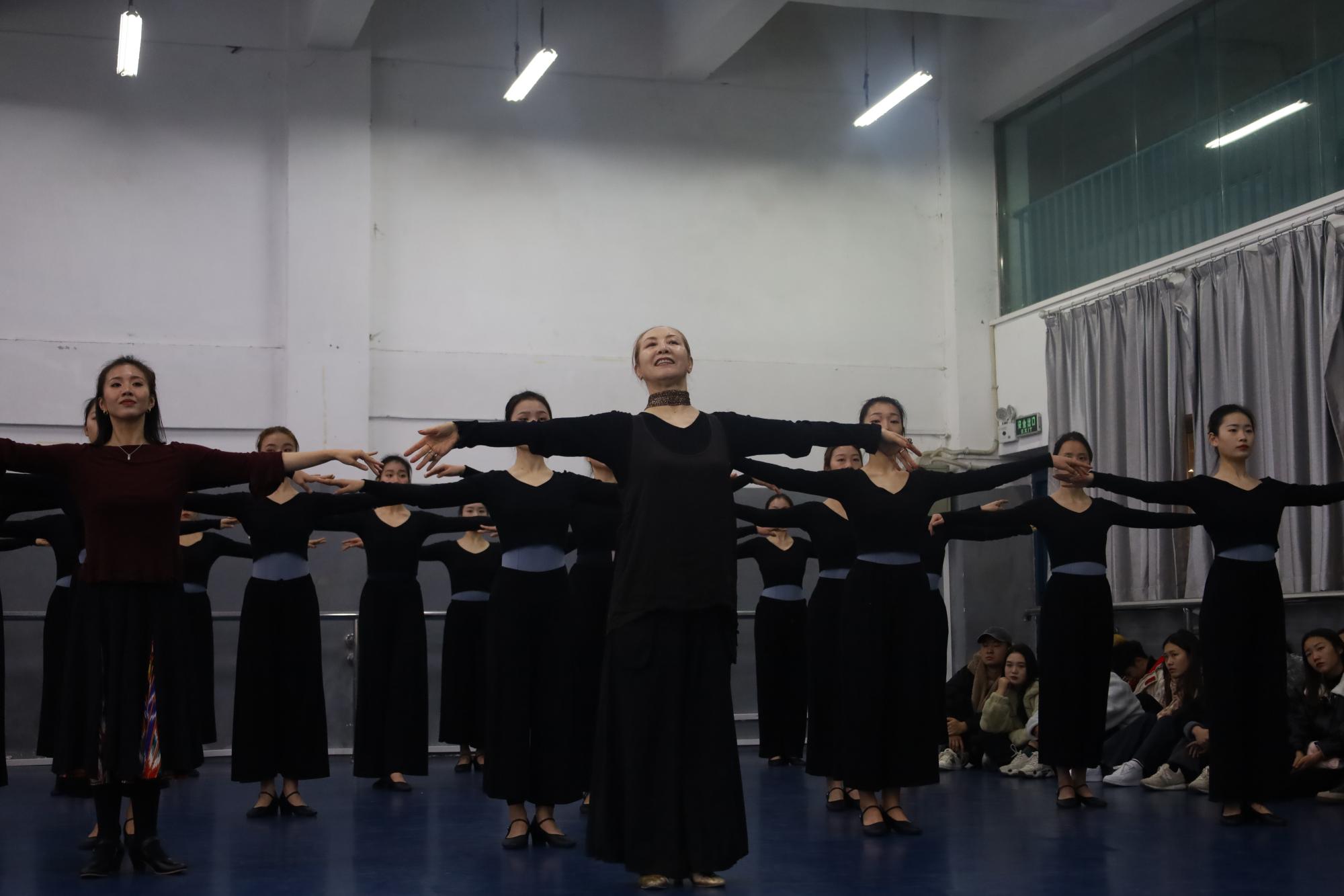 首先,韩萍教授给大家简单的介绍了维吾尔族的各种风俗,让同学们了解了维吾尔族舞蹈动作风格性的形成。紧接着,韩萍教授带领舞蹈系学生们进行实践课,韩萍讲到,维吾尔族舞蹈讲究挺而不僵,颤而不窜,垂视不低头,斜视不转头。给人一种高贵典雅的感觉,在跳维吾尔族舞蹈时要注意体态,用意识跳舞,我们的动作为内容服务,内容又为思想服务。