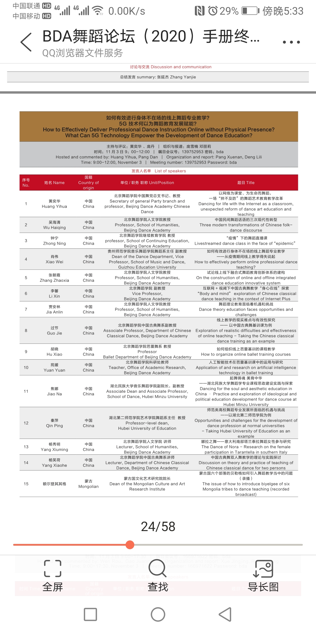 肖伟老师于11月3号在分论坛《如何有效进行身体不在场的线上舞蹈专业教学》中代表永利集团发言,在全国及世界舞蹈人的关注下,介绍了师范学院77779193永利官网集团舞蹈系的线上教学和关于线上教学思辨的几点思考,从三个方面进行阐述:1 .线上多模式教学2.线上教学优劣势对比3 .如何提升线上教学的有效性。发言得到了众多学者的关注,为师范学院77779193永利官网集团舞蹈系获得了良好的声誉。