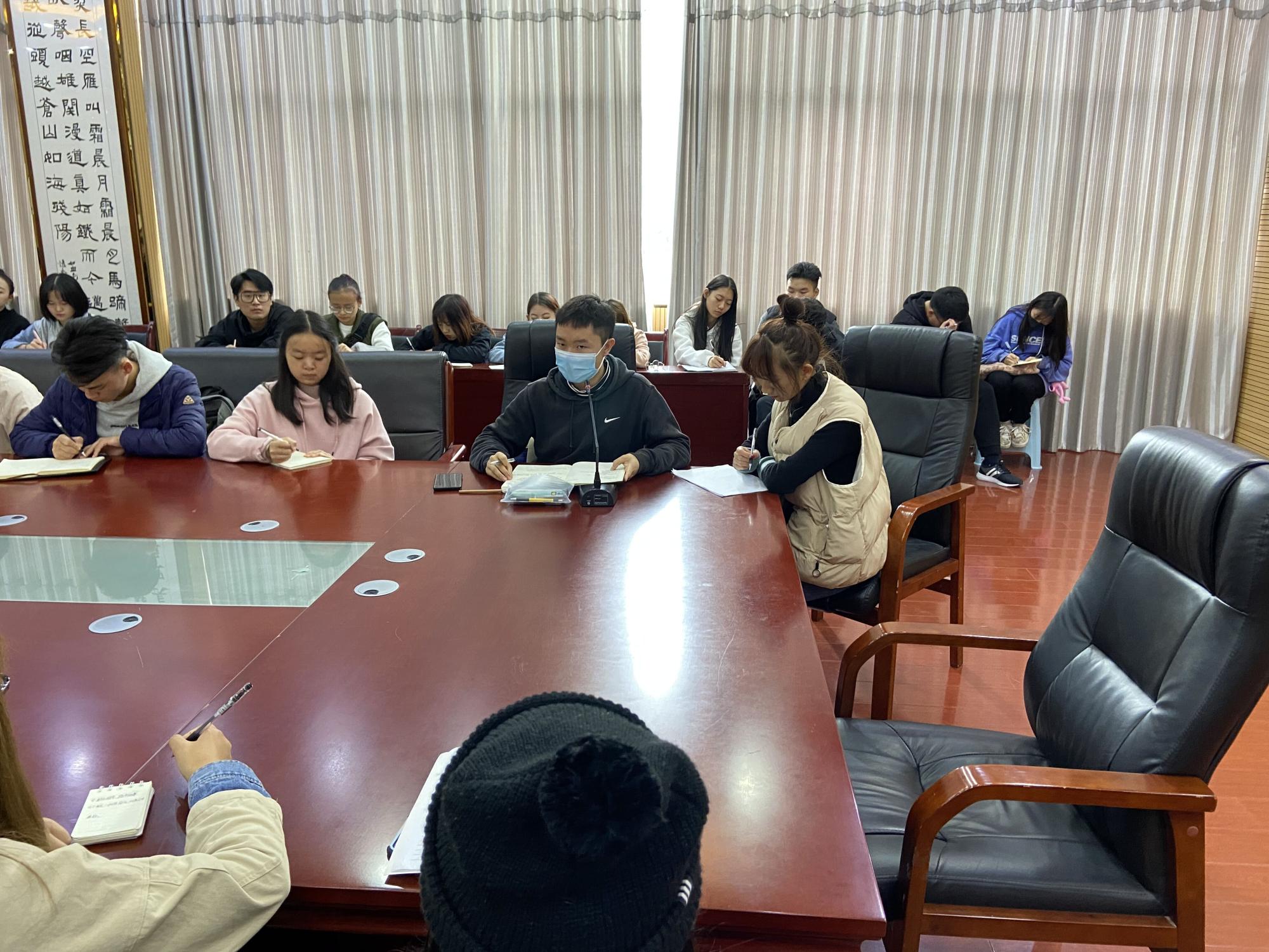 10月29日,77779193永利官网集团在六楼会议室召开以“牢记学生干部使命、传承责任担当精神”为主题的学生干部会议,参加此次会议的有77779193永利官网集团党委书记付巧及涂仁明、蒋晶晶和全体学生干部。