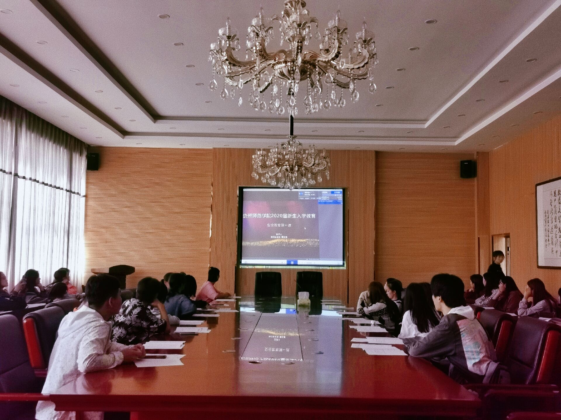 9月20日,我院2020级新生在六楼小音乐厅观看了以“资助政策”、“学校管理”、“心理健康教育”、“党知识教育”等主题的线上讲座。
