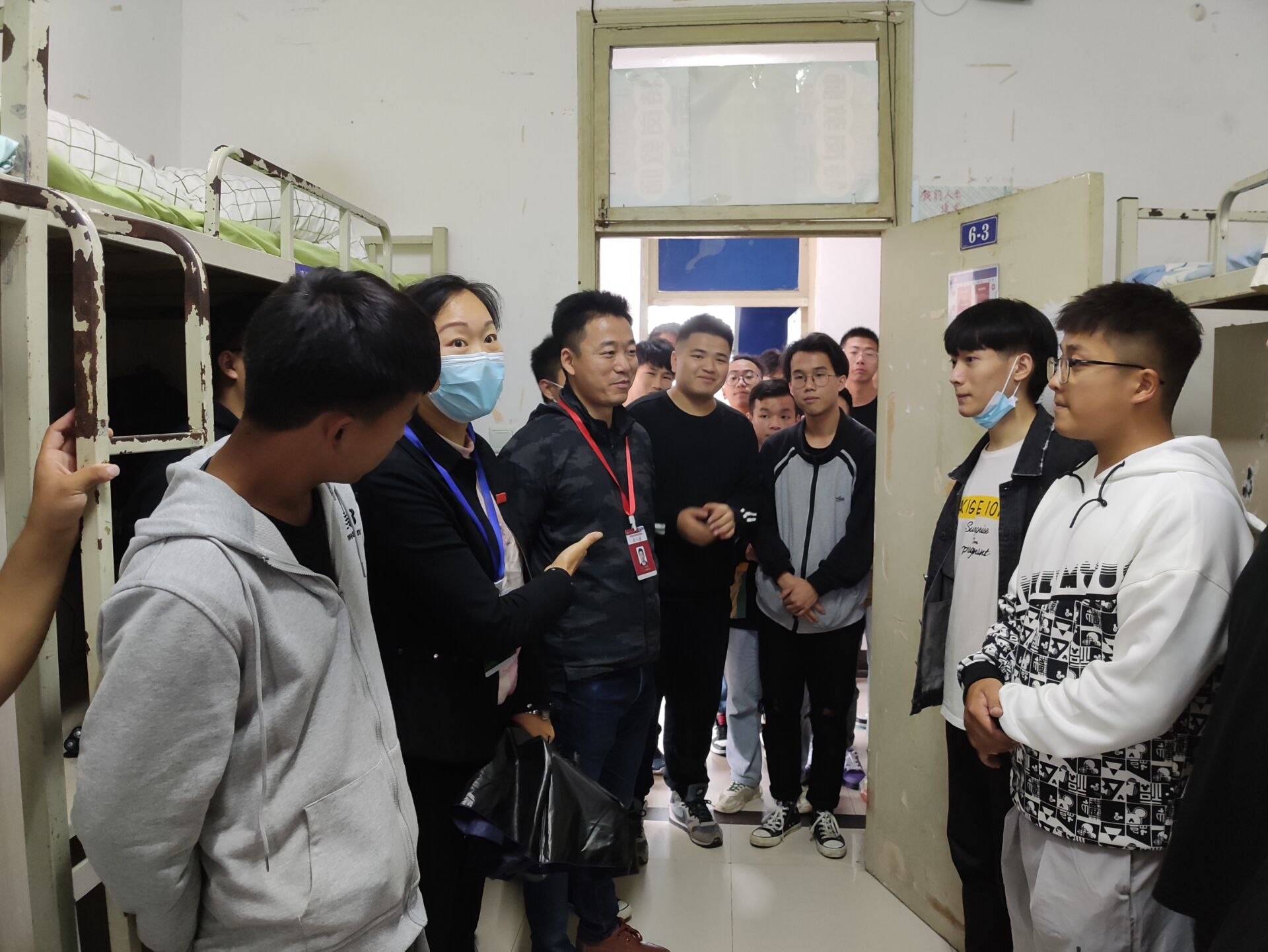晚上六点,学院领导和老师进寝室对新生进行了慰问。党委书记付巧寄语新生:新生活新平台是新的起点,是学习和教学的继续,是创新的开始。她希望新生同学们好好把握大学生活,珍惜大学时光,为将来的就业奠定好基础。党委副书记朱晨刚对新生的安全、纪律和近期的教育活动等方面进行了安排和强调。