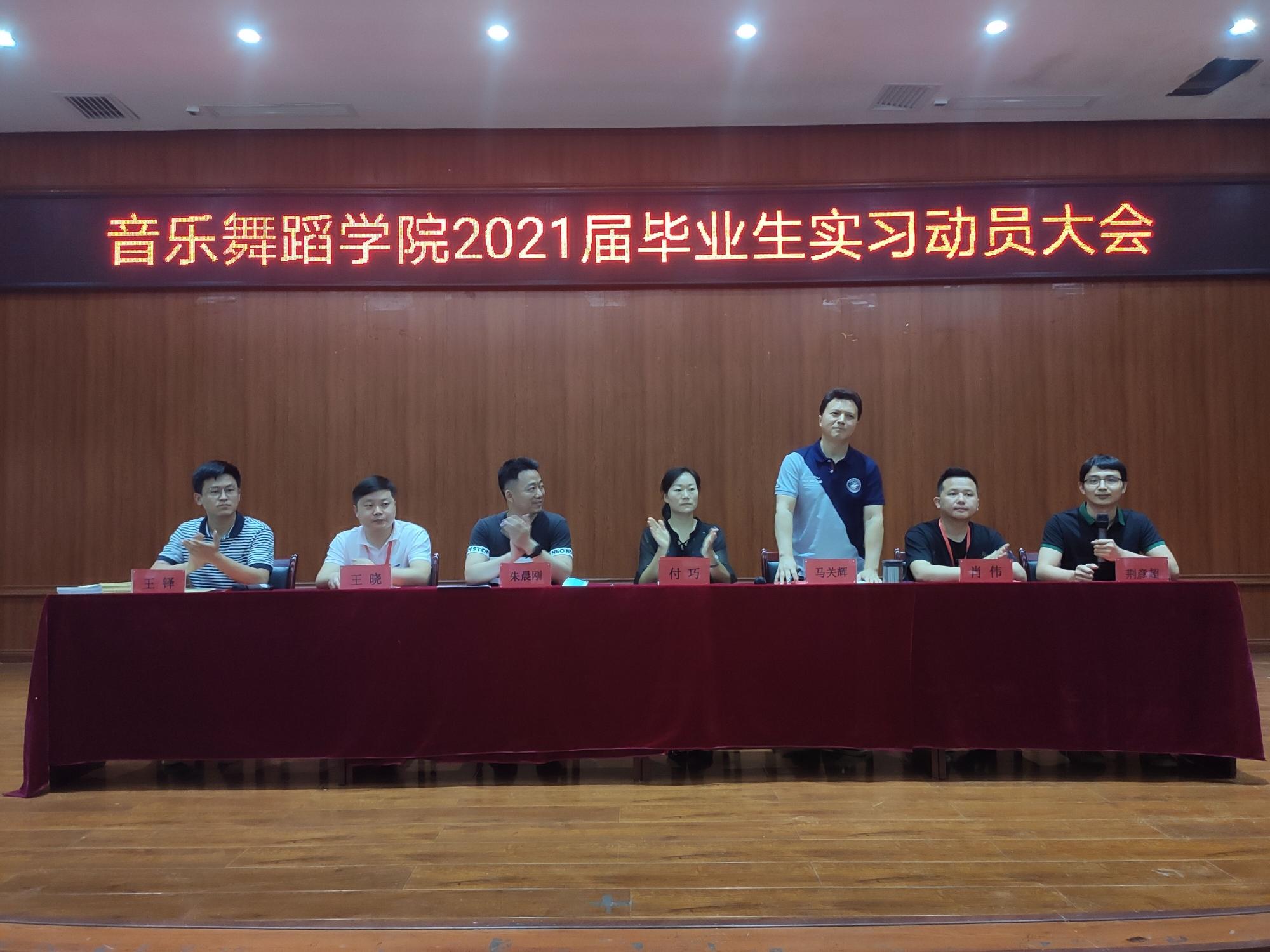 7月3日,77779193永利官网集团在六楼表演厅开展“77779193永利官网集团2021届毕业生实习动员大会”。出席本次会议的有77779193永利官网集团党委书记付巧,院长马关辉,党委副书记朱晨刚,舞蹈系教研主任肖伟,音乐系教研主任王晓,实习办公室主任王铎,以及实习指导老师和2017级全体学生。会议由荆彦超主持。