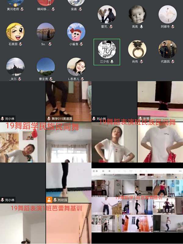 在正常的教学过程中加入期中考试,是舞蹈系近年来的教学改革环节之一。5月14日,由于疫情的影响,在学生仍未返校的情况下,舞蹈系2019–2020学年第二学期的专业课程期中考试在线上照常进行。