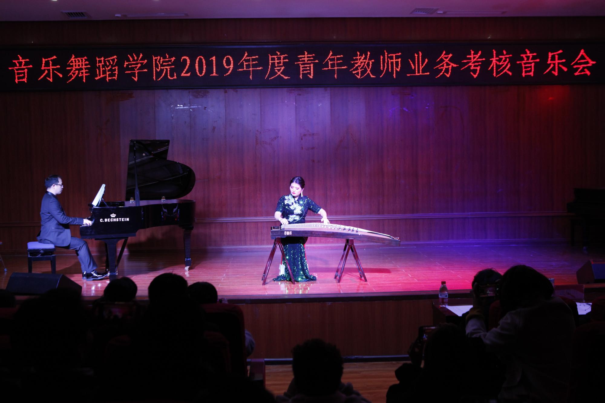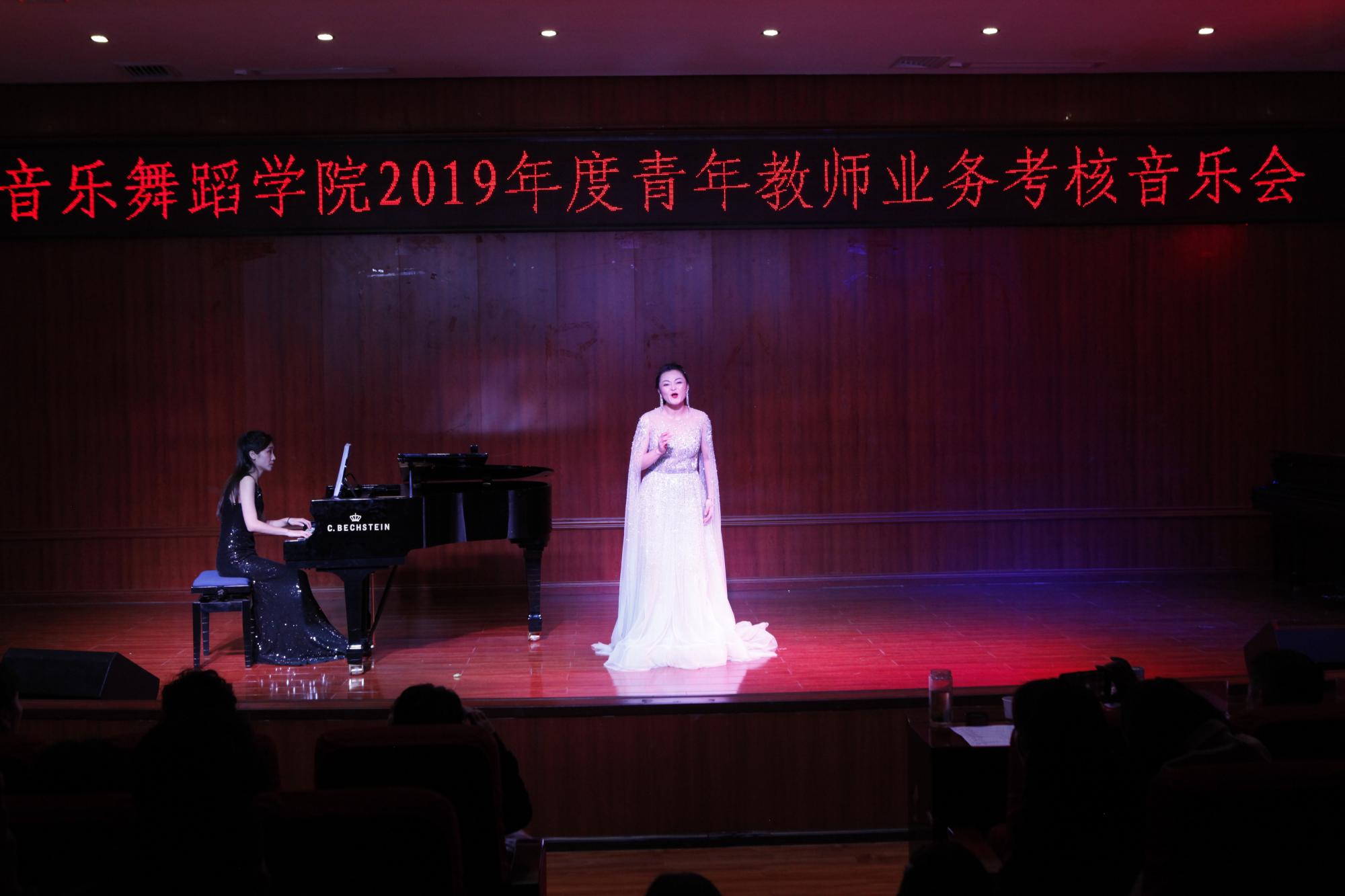 在考核音乐会中,来自声乐、钢琴、器乐三个教研室的老师们为大家展示了34首不同类型、不同体裁、不同风格的曲目,如钢琴曲《角鲨》(为钢琴、小提琴、巴扬而作)、《沉没的教堂》,古筝曲《临安遗恨》、《打虎上山》,二胡曲《光明行》、《战马奔腾》,中提琴曲《BWV1009布列舞曲》,声乐曲《故乡》、《黄河里划桨》、《如梦令》、《念奴娇·赤壁怀古》等,精彩的演出充分展示了我院音乐系青年教师扎实的艺术功底,各位老师也为正在求学中的青年学生做出了良好的舞台示范。