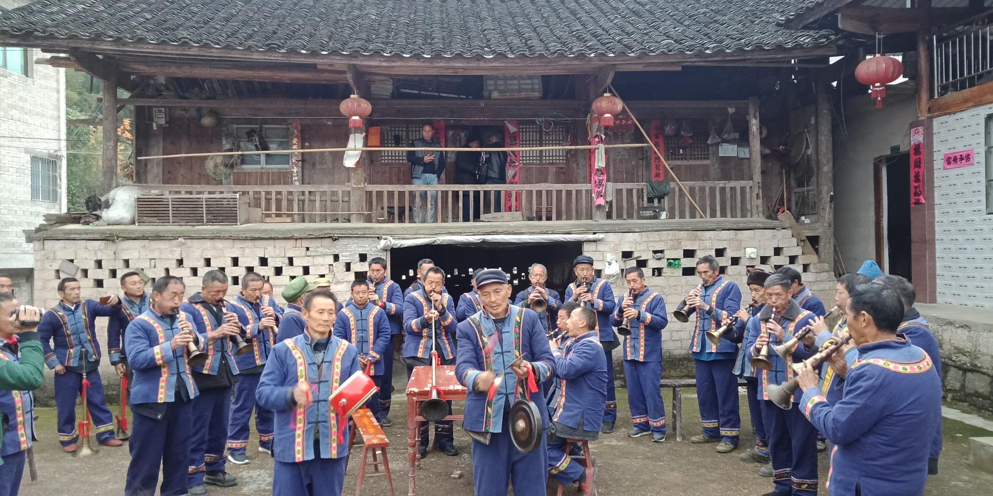 11月18日中午采风团抵达镇远县后,稍作休整下午2点向第一站镇远县尚寨乡律令村出发,抵达后村民们十分热情好客,穿上整齐划一的民族服装为我们演奏了各类风格的唢呐曲,并且还为我们讲解了唢呐的起源和制作材料等一些问题。欣赏完表演之后,与唢呐的传承人和一些专业的老师进行了交流学习,更加深入了解了唢呐的相关信息。热心的村民还为我们悉心准备了晚餐,就这样在热热闹闹的晚餐中结束了一天的行程。
