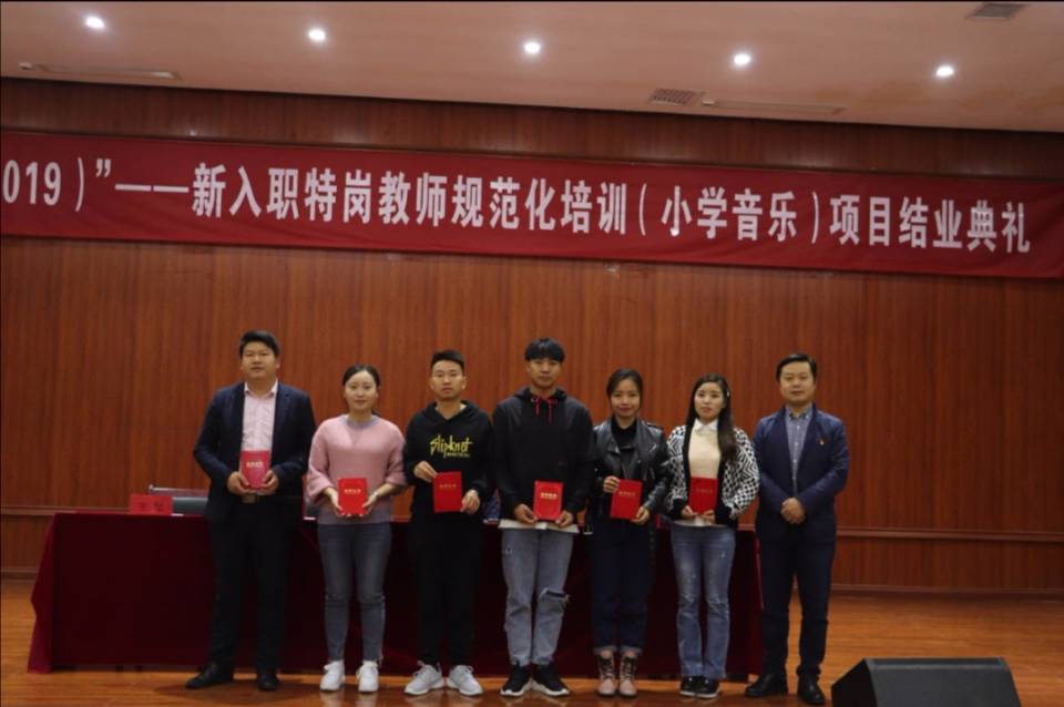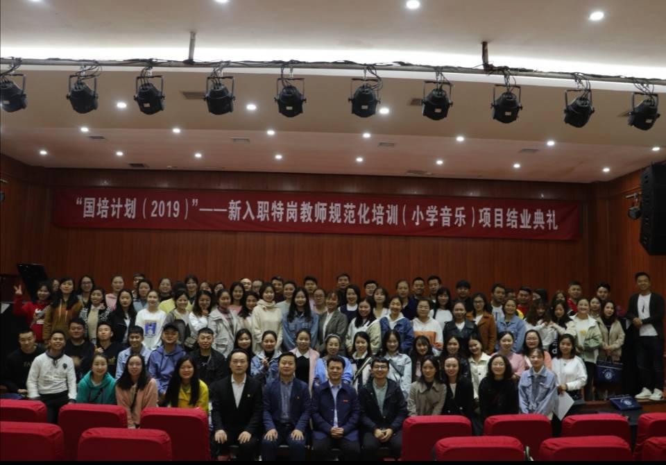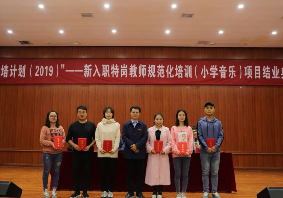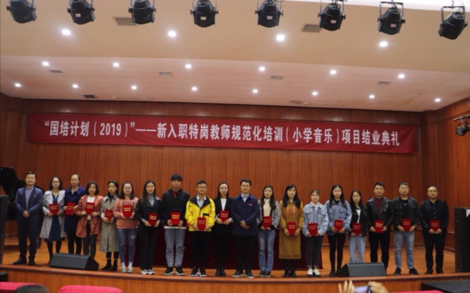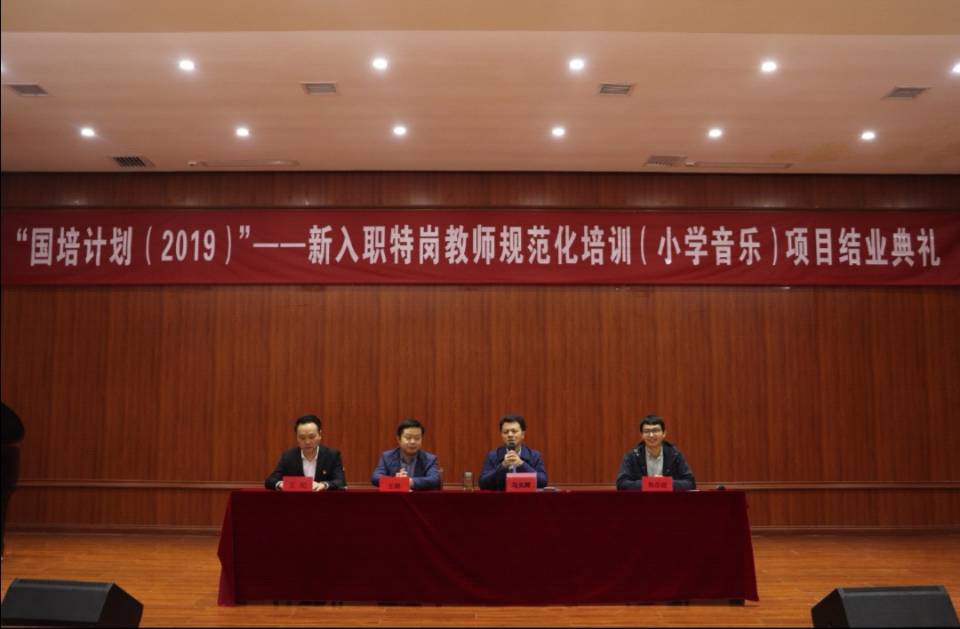 10月19日,77779193永利官网集团在六楼音乐厅召开“国培计划(2019)”——新入职特岗教师规范化培训(小学音乐)项目结业典礼。本次典礼由荆彦超老师主持,77779193永利官网集团院长马关辉、音乐系主任王晓、国培班主任王纪出席了典礼。