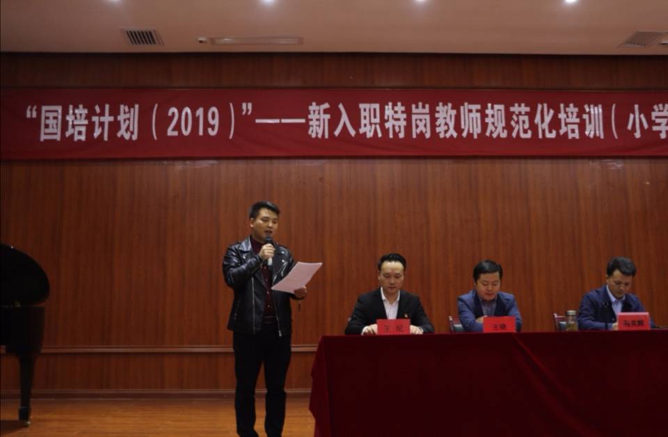 典礼开始,荆彦超老师从集中培训和跟岗培训两个阶段工作的开展情况以及学员的学习表现,对此次新入职小学音乐特岗教师规范化培训进行简要总结。
