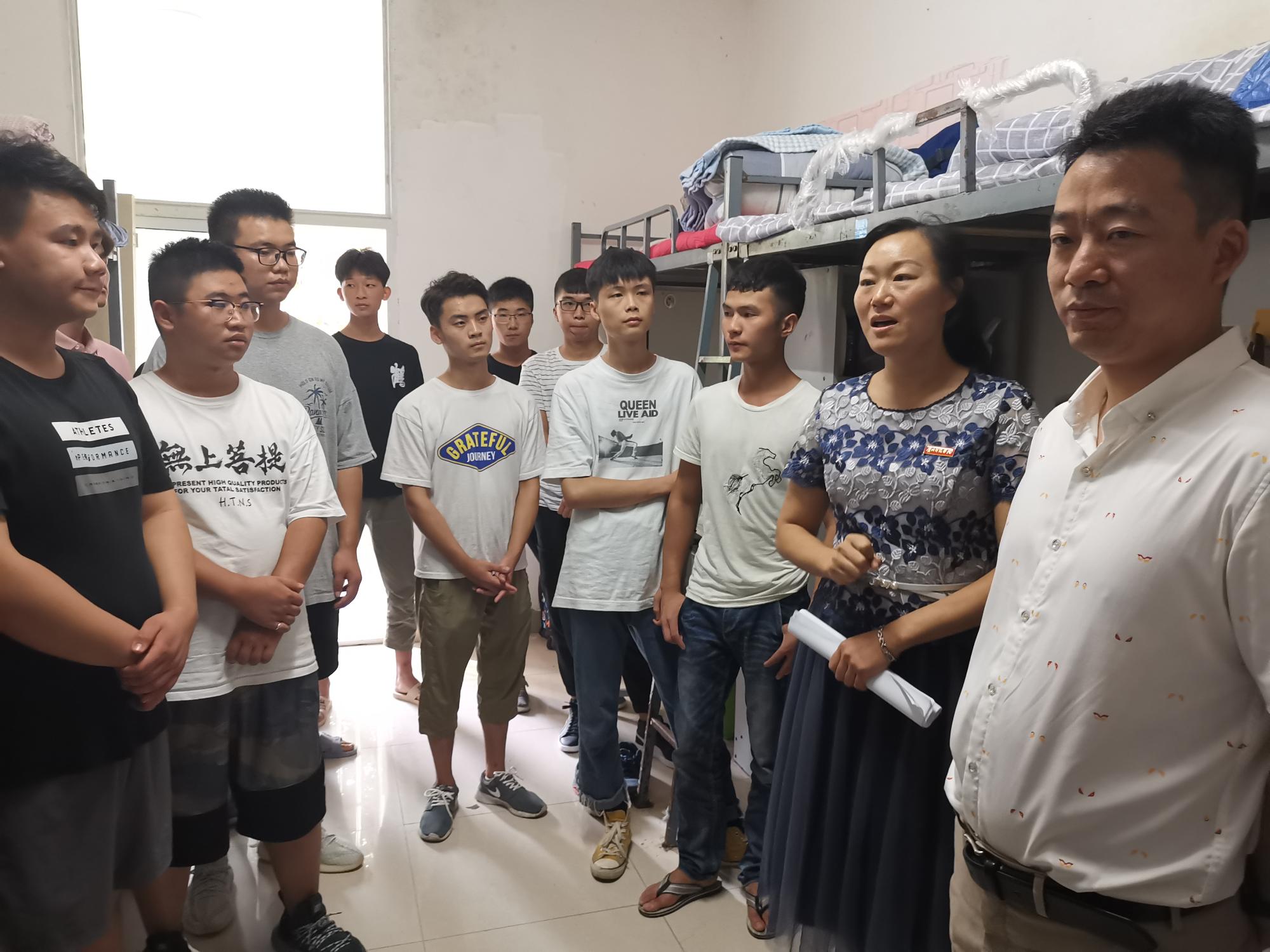 晚上六点,新生报到率已到100%,学院领导和老师进寝室对新生进行了慰问。党委书记付巧寄语新生:新生活新平台是新的起点,是学习和教学的继续,是创新的开始。她希望新生同学们好好把握大学生活,珍惜大学时光,为将来的就业奠定好基础。党委副书记朱晨刚对新生的安全、纪律和近期的教育活动等方面进行了安排和强调。