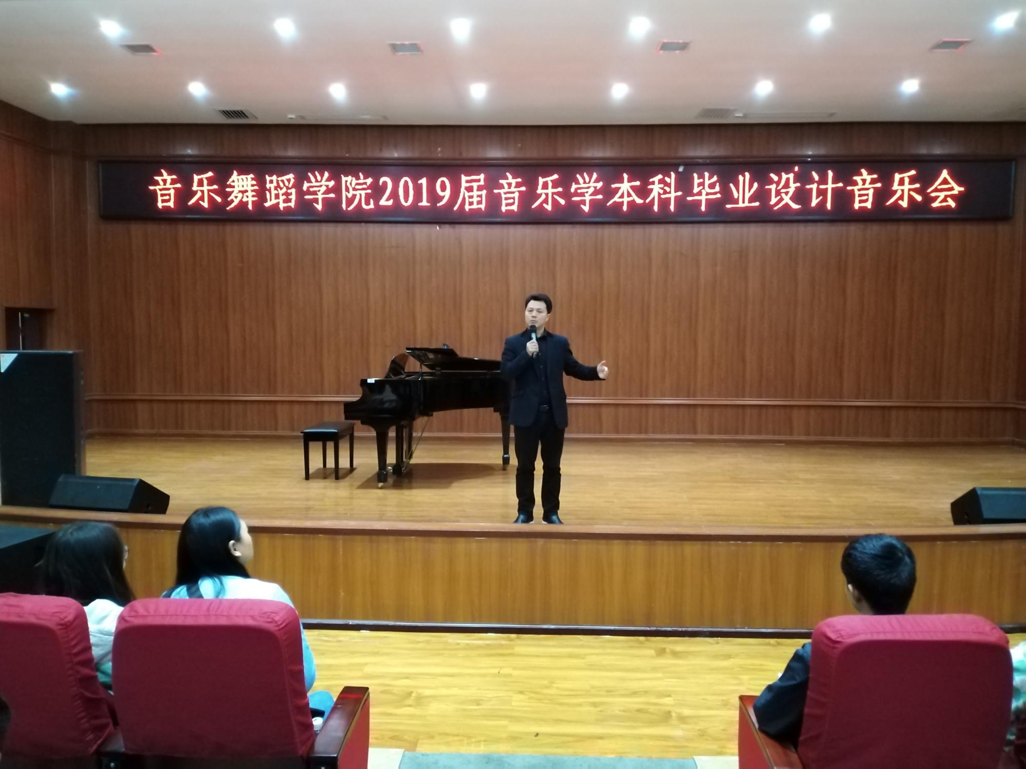4月15日上午10点,2019届音乐学专业本科毕业设计考核音乐会在逸夫楼六楼小音乐厅正式启动,77779193永利官网集团院长马关辉出席开幕式并发表致辞,他亲切勉励所有毕业生要志存高远、不忘初心,要精心准备、勇于表现,争取在舞台上把自己大学四年所学完美地展示出来,以此向培养自己的学院汇报、向培育自己四年的各位老师汇报。
