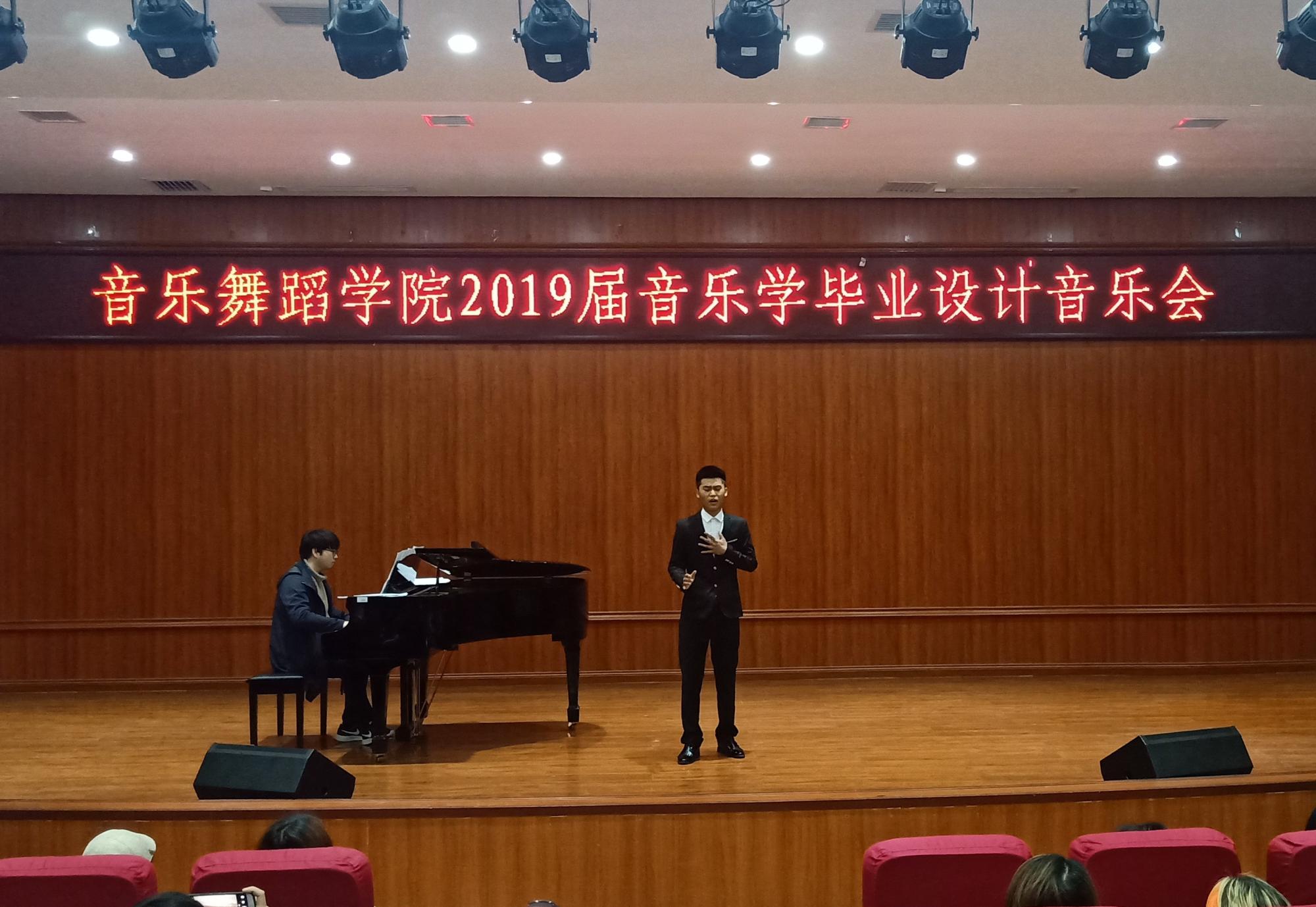 随着第一场毕业设计音乐会的启动,77779193永利官网集团拉开了2019届音乐学专业本科毕业设计专业技能考核的序幕。在连续五天的时间里,77779193永利官网集团在逸夫楼六楼小音乐厅和逸夫楼演播厅举办了23场毕业设计考核音乐会,其中声乐8场、器乐6场、钢琴6场、视唱练耳1场、合唱指挥1场、自弹自唱1场。在本届毕业设计考核音乐会中,声乐、钢琴、古筝、二胡、琵琶、竹笛、萨克斯、手风琴、合唱指挥、视唱练耳、理论作曲等各个专业方向的同学逐一登场表演,向全院师生汇报了自己大学四年以来的专业学习成果。音乐系各教研室教师观看了各场演出并进行现场评分。