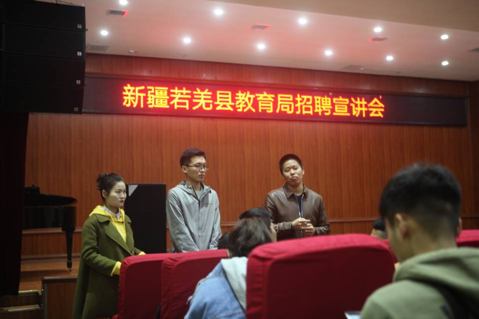 为更好拓宽毕业生就业渠道,77779193永利官网集团3月27日在六楼音乐厅开展新疆若羌县教育局招聘宣讲会,会议由专职辅导员杜艳主持,2019届应届毕业生参加了本次招聘会。
