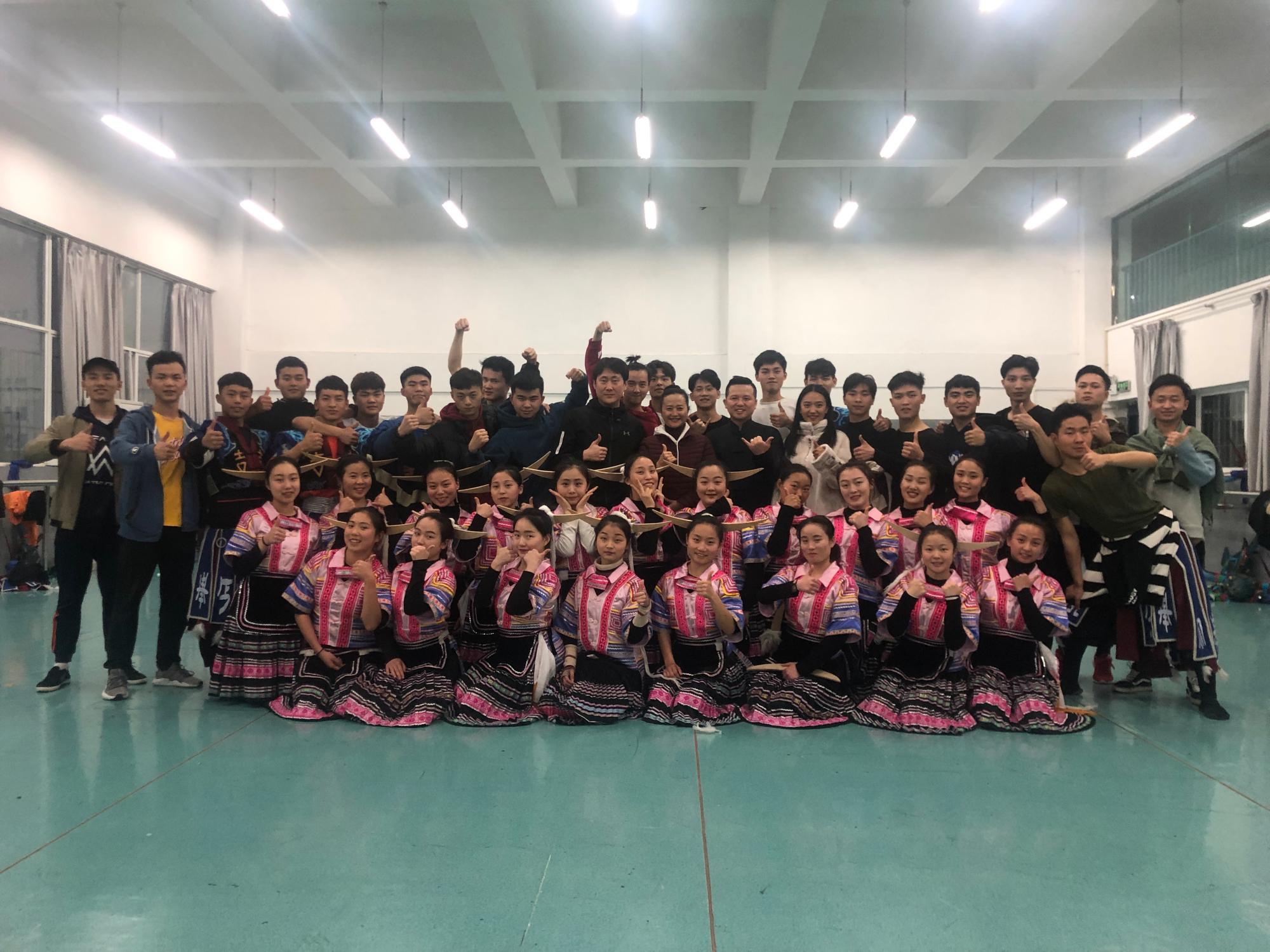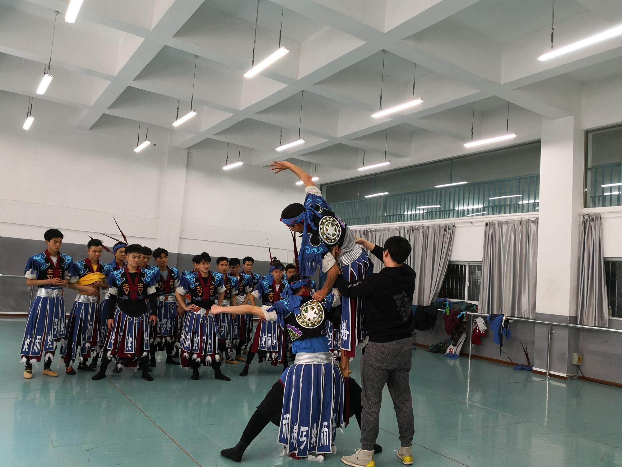 指导老师分别对两支舞蹈作品主题意义的升华、队型结构的变化、原始动律和动作的舞台化提升等多方面进行了全方位的指导。张帆在给舞蹈作品《斗角》修排的过程中,通过对双人领舞的调整使得整个作品灵魂角色更加的立体和饱满,同学们在老师的指导下,从动作要领的把握到人物情感的表达都有了很大的提高。庞宏老师在给舞蹈作品《青丝红颜》修排的过程中,对道具头饰、舞蹈动作进行了调整。曼妙的舞蹈动作和音乐仿佛看到了春风之下,田园之中苗族人民幸福的生活状态。