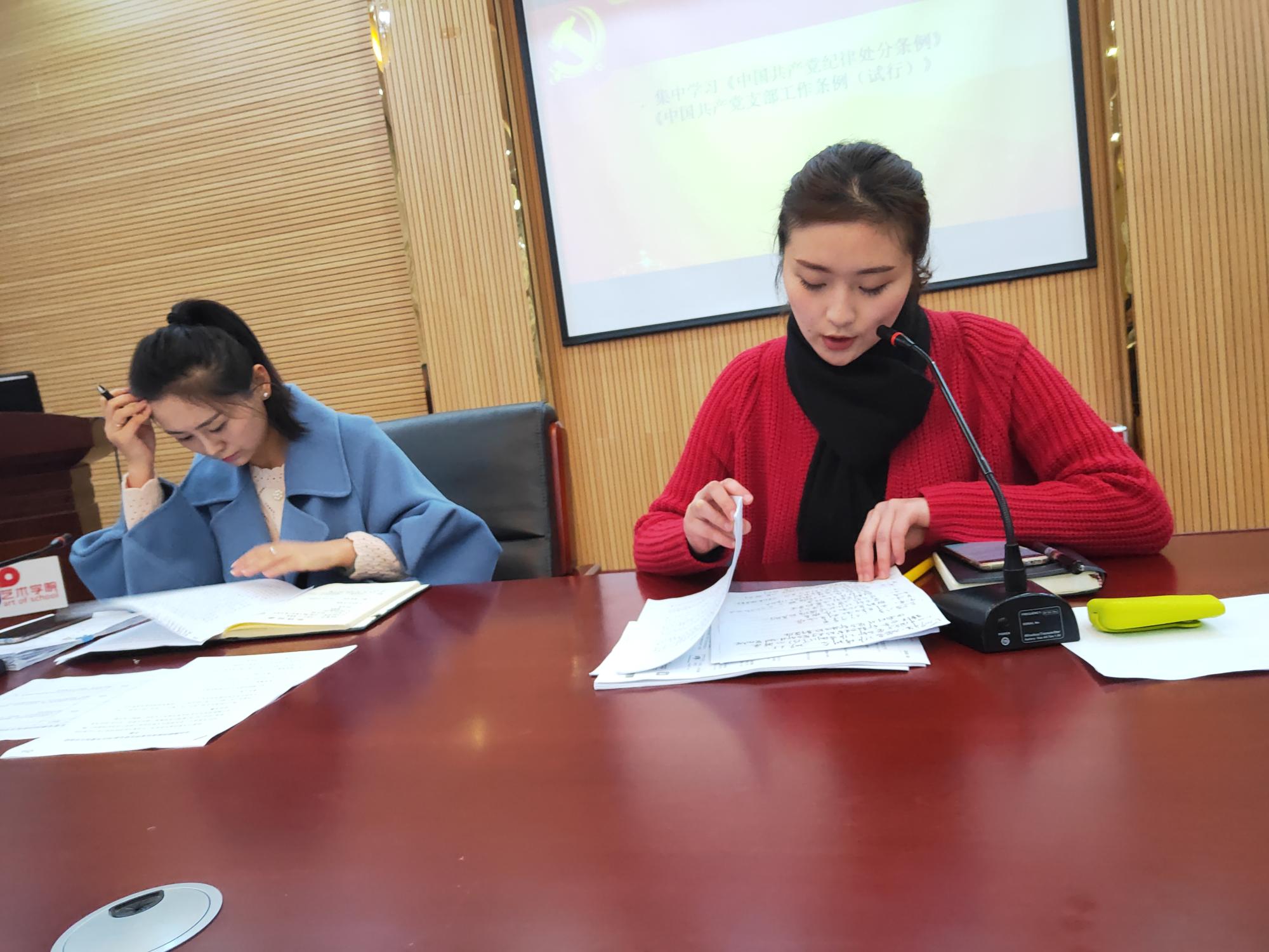 组织委员郭媺带领全体同志学习相关文件