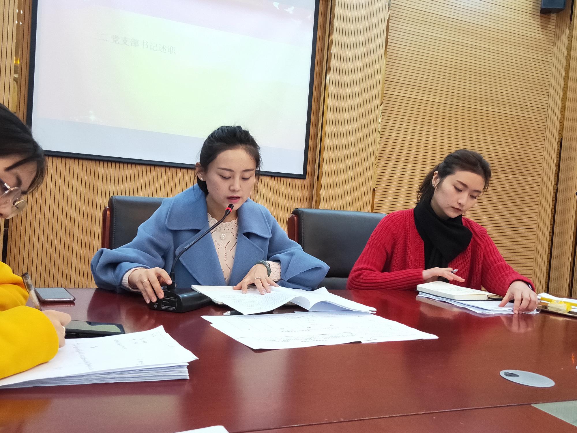 舒然就支部2018年整体工作情况做述职报告。她从加强政治学习,提高思想认识、发挥支委作用,明确党建职责分工、强化身份意识,加强党员管理三方面进行了汇报并就支部下一步工作进行了安排和分工。