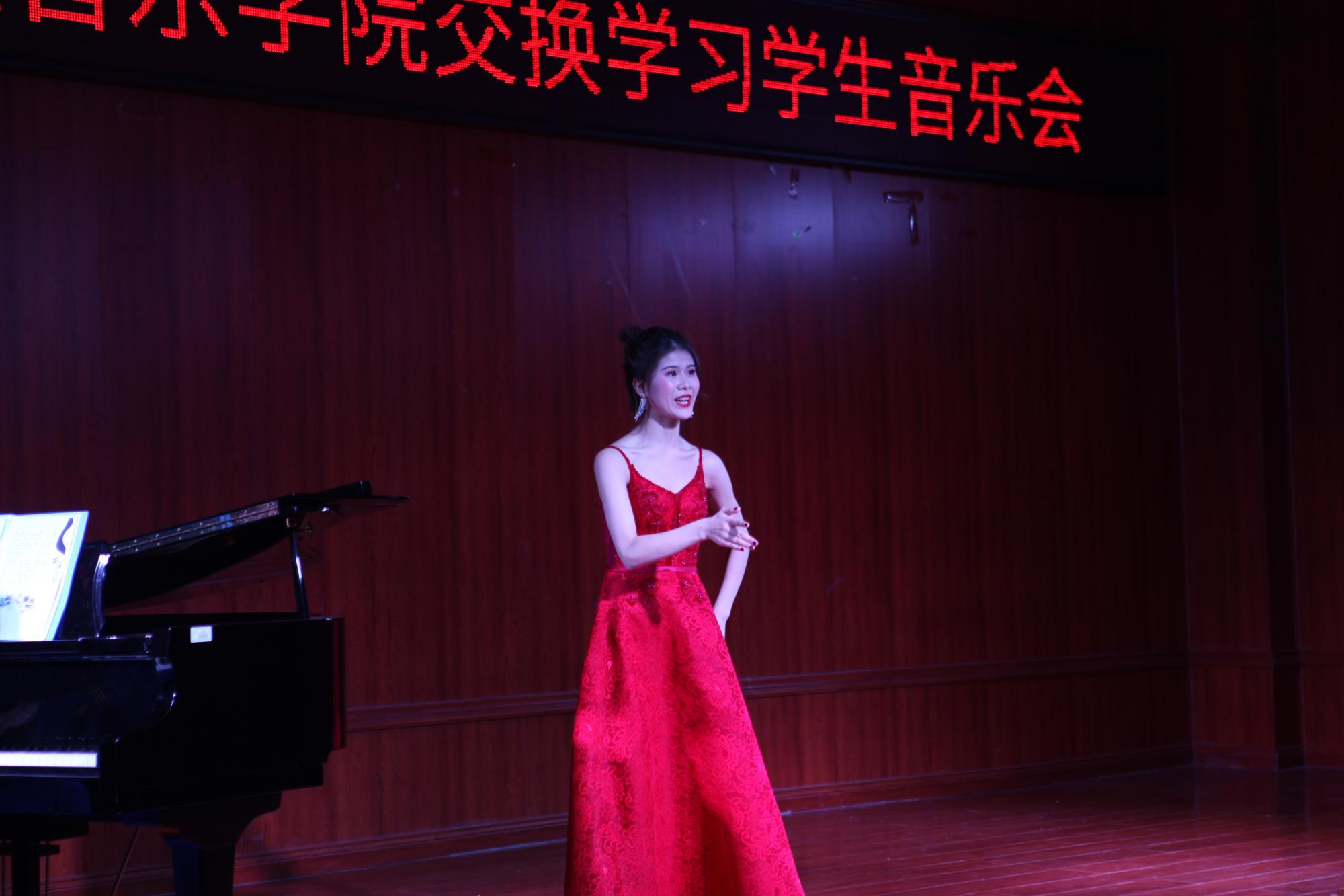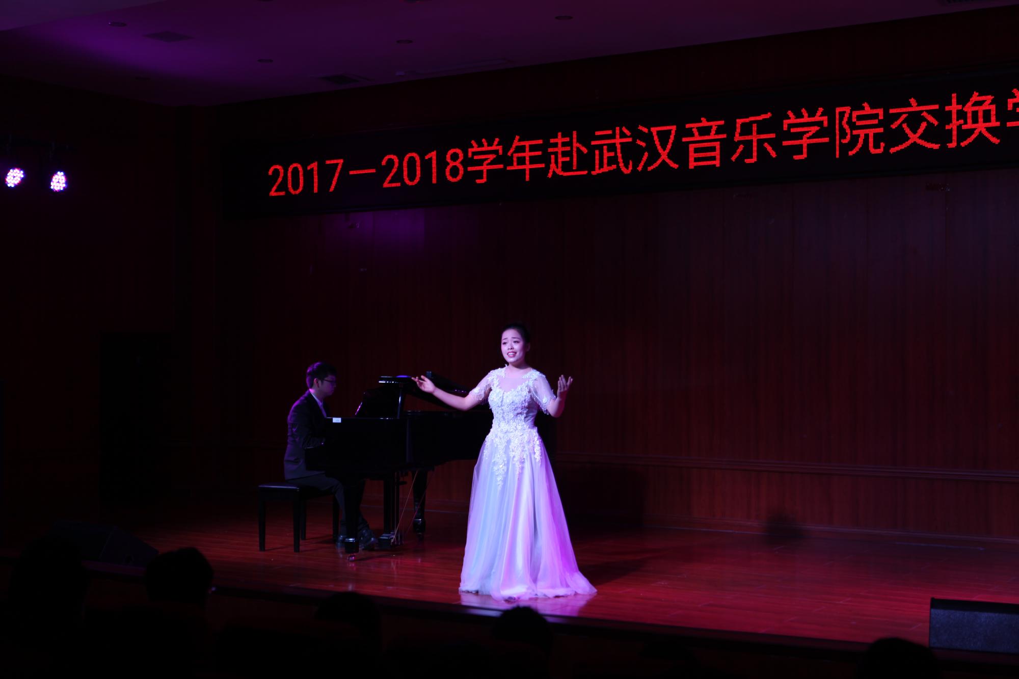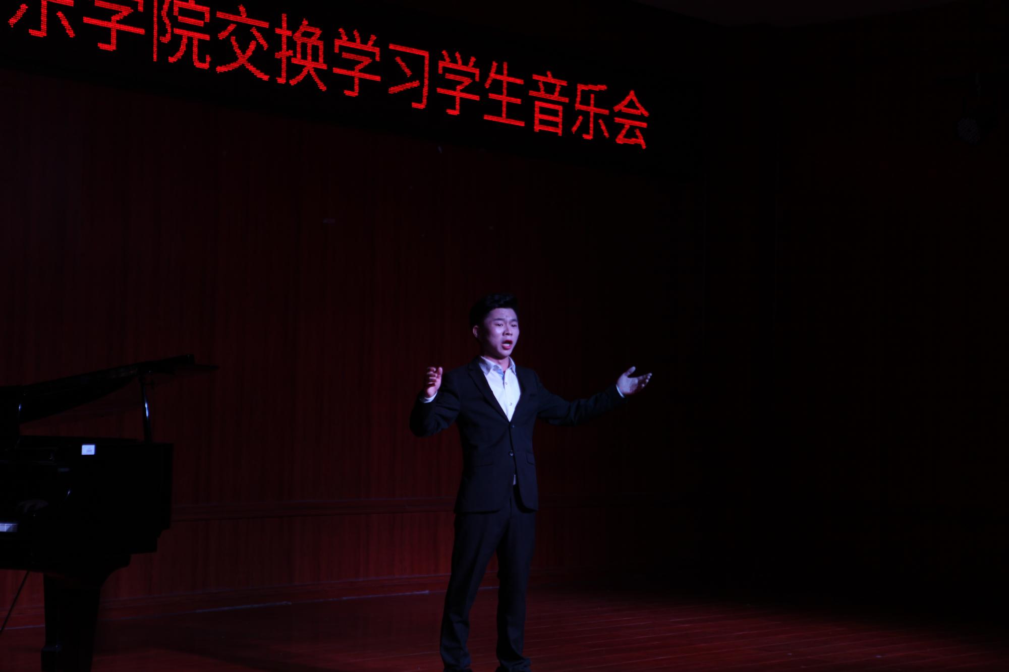 本场音乐会主角冯佳路、陈胜泽、杨甜三名同学是我院与武汉音乐学院合作以来第一批交换生。在经过一年的交换学习后,回校向老师和同学作专业汇报演出。三名同学分别演唱了五首风格迥异的歌曲,展示了扎实的基本功和精湛的演唱技巧。音乐会高潮迭起,赢得现场师生阵阵掌声。