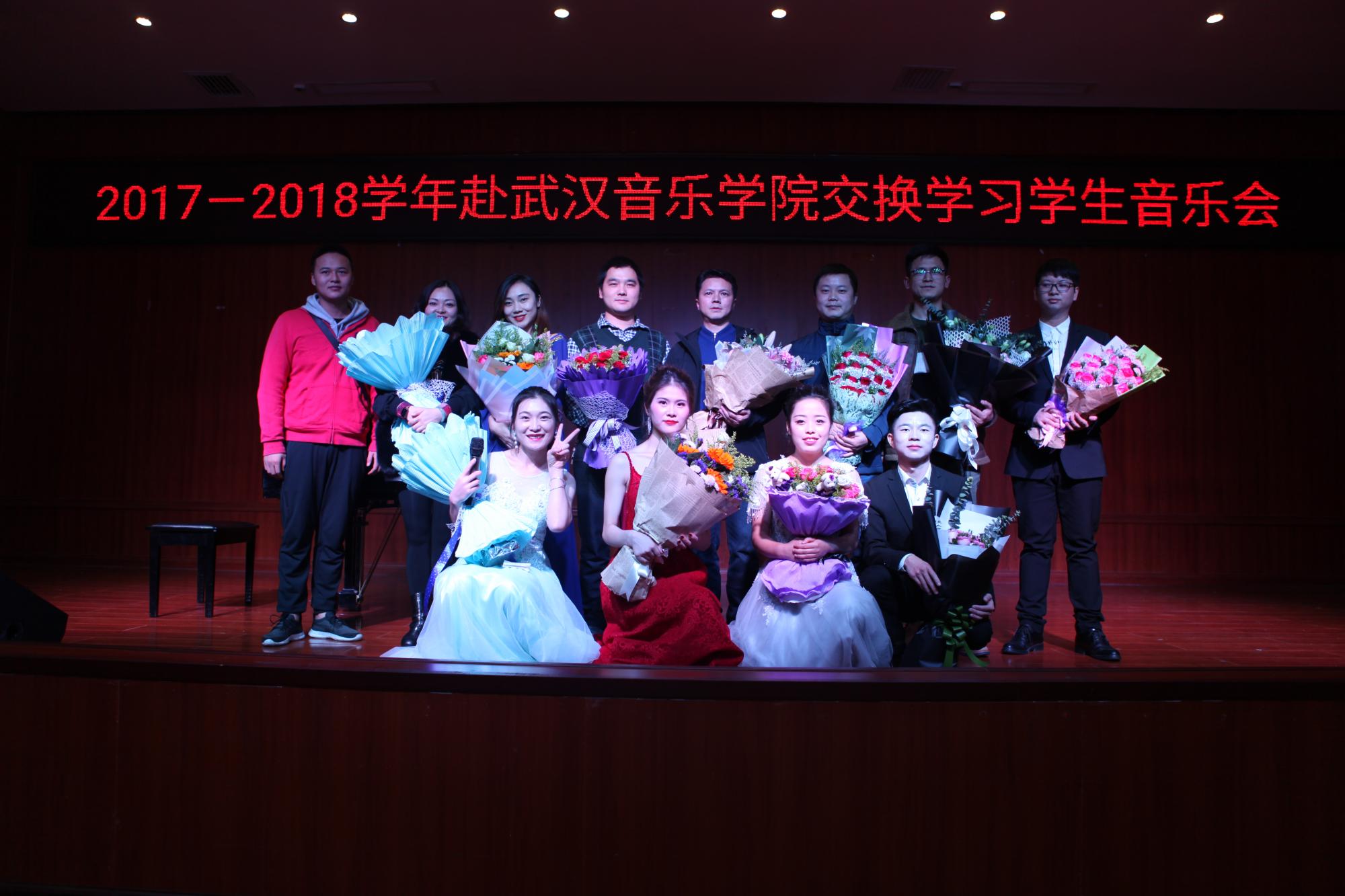 10月24日,77779193永利官网集团2018年赴武汉音乐学院交流学习的三名交换生在77779193永利官网集团六楼表演厅举行“畅游艺海 感恩师院”音乐会。77779193永利官网集团马关辉、党委副书记朱晨刚及音乐学科全体教师观看了音乐会。