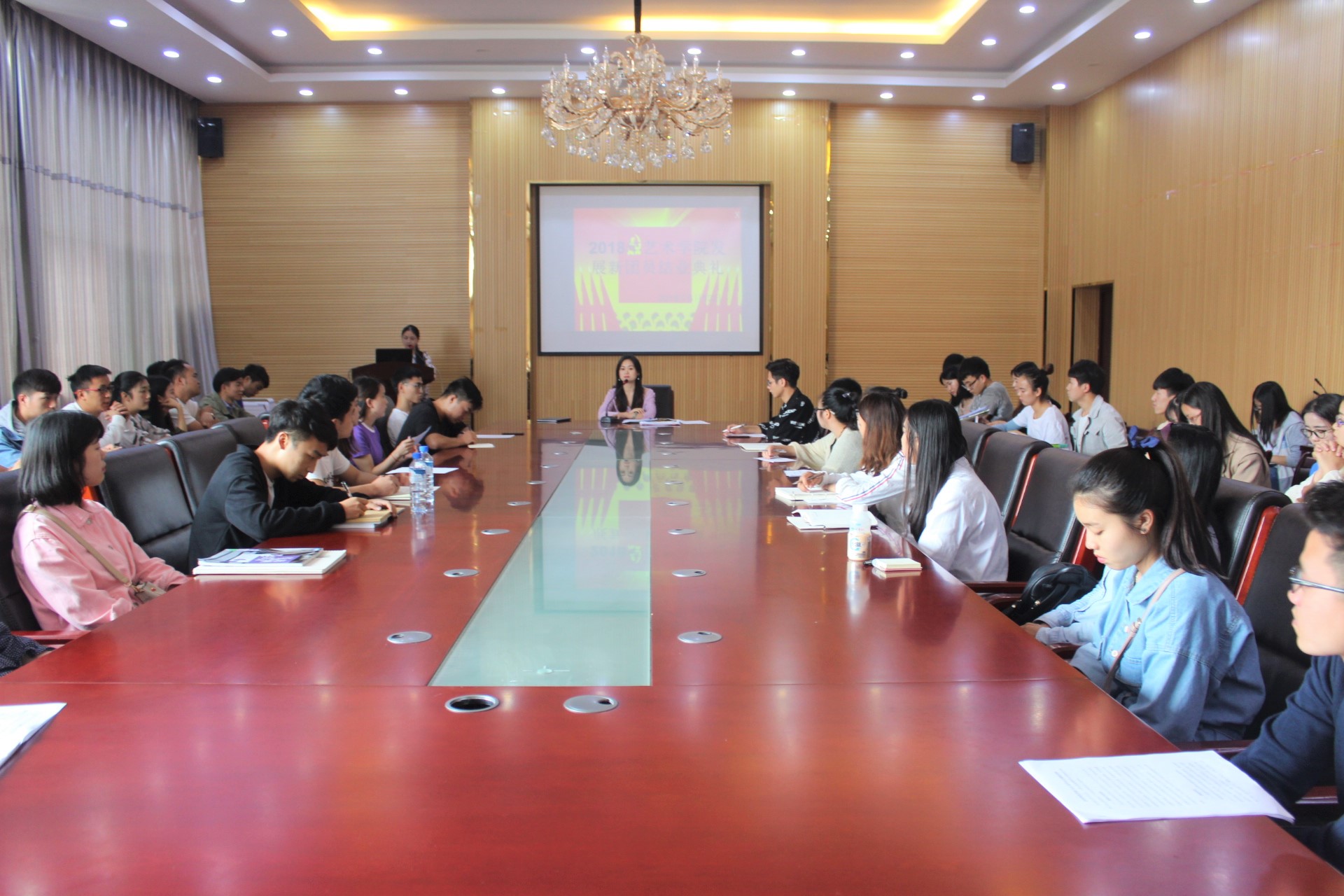 6月13日中午,艺术学院团委在学院六楼会议室举行了2018年发展新团员培训结业典礼。艺术学院团委书记舒然、团委副书记刘旭东、组织部部长涂仁明出席大会,全体2018年新团员参会。大会由团委办公室干事陈璐主持。