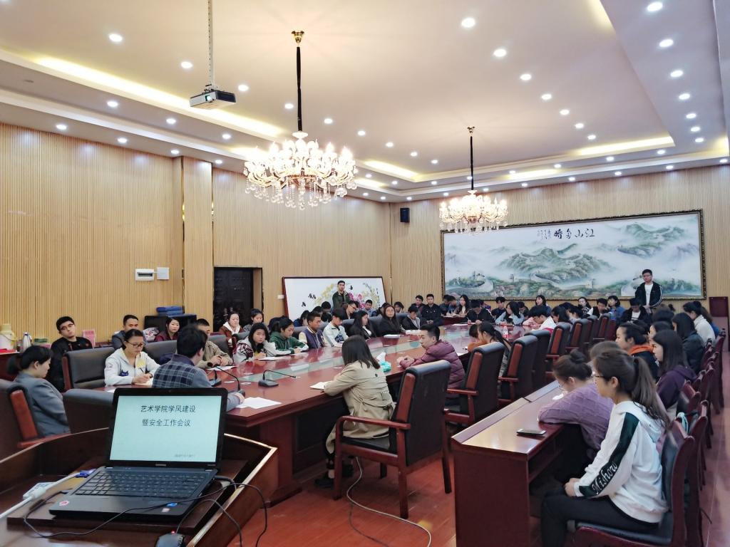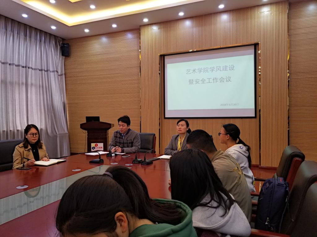 2018年3月20日,艺术学院学风建设暨安全工作会议在我院六楼会议室召开,党委书记付巧、党委副书记朱晨刚、专职辅导员谭娇艳以及各班学生干部参加了本次会议,会议由朱晨刚主持。