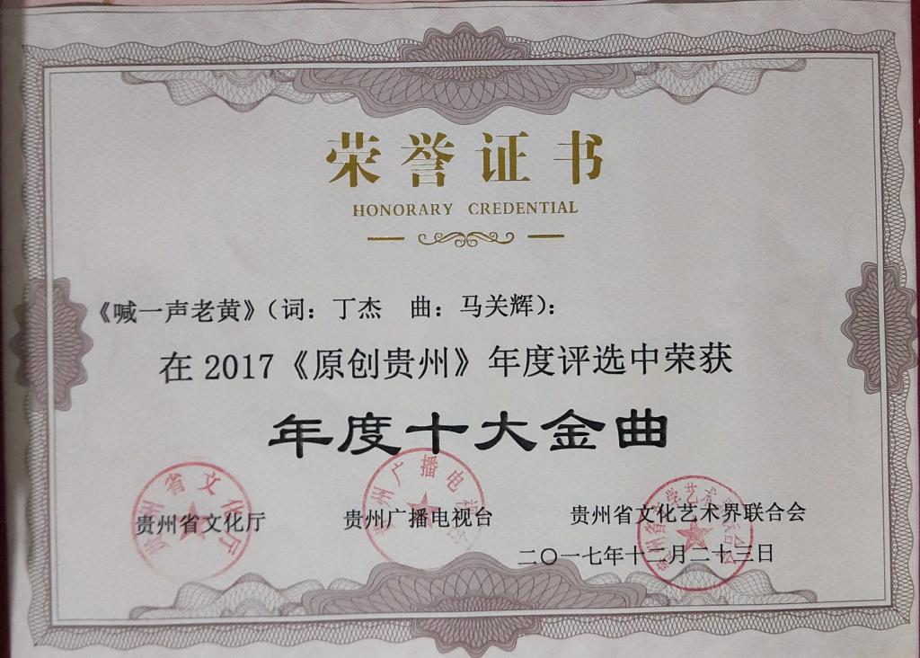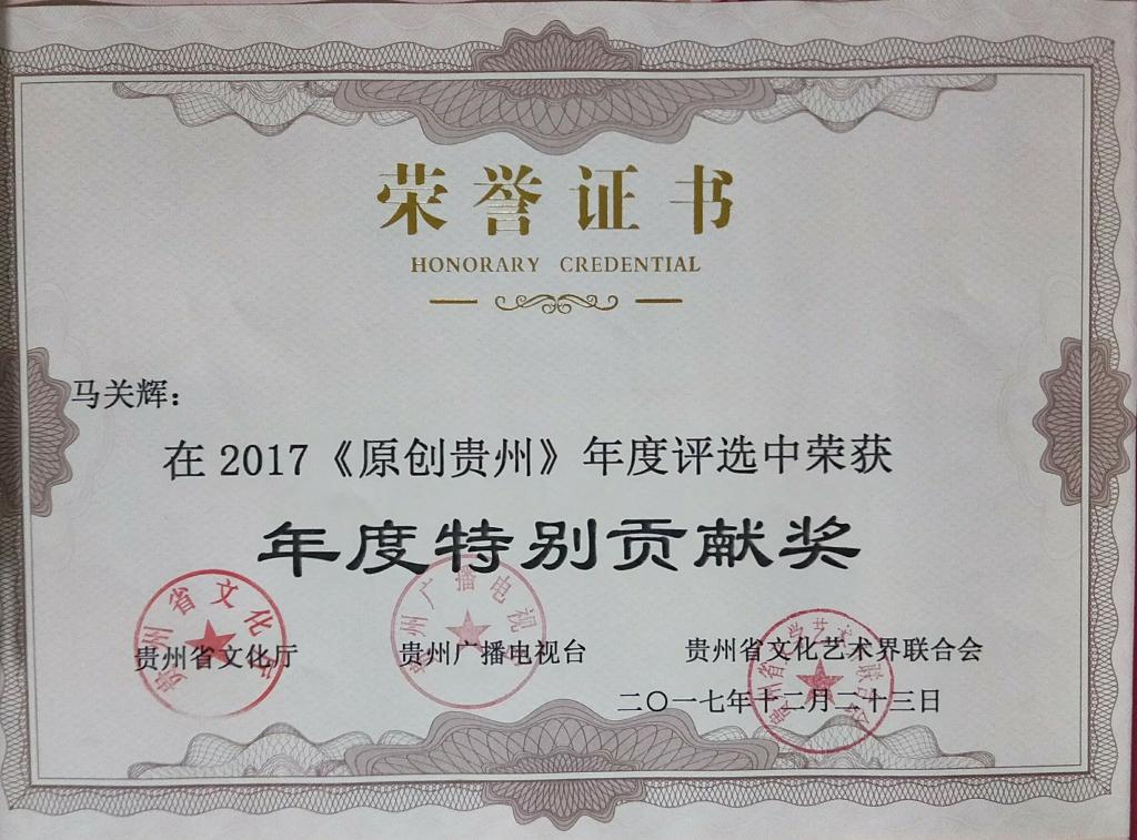 贵州音乐界专家联合音乐先锋榜全国24家成员台对2017参选的作品和歌手进行了评选,最终角逐出“年度最佳男歌手”、“年度最佳女歌手”、“年度十大金曲”、“年度新人”、“听众最喜爱歌手”、“年度特别贡献奖”六大奖项。获奖音乐人不乏省内知名的优秀歌手,他们每一位都各具亮点,演唱的作品都是动人心弦,受到专家老师的高度评价。其中,我校艺术学院院长马关辉教授获年度特别贡献奖,《喊一声老黄》、《石门赋》、《山那边》、《月光》等歌曲荣获“年度十大金曲”。