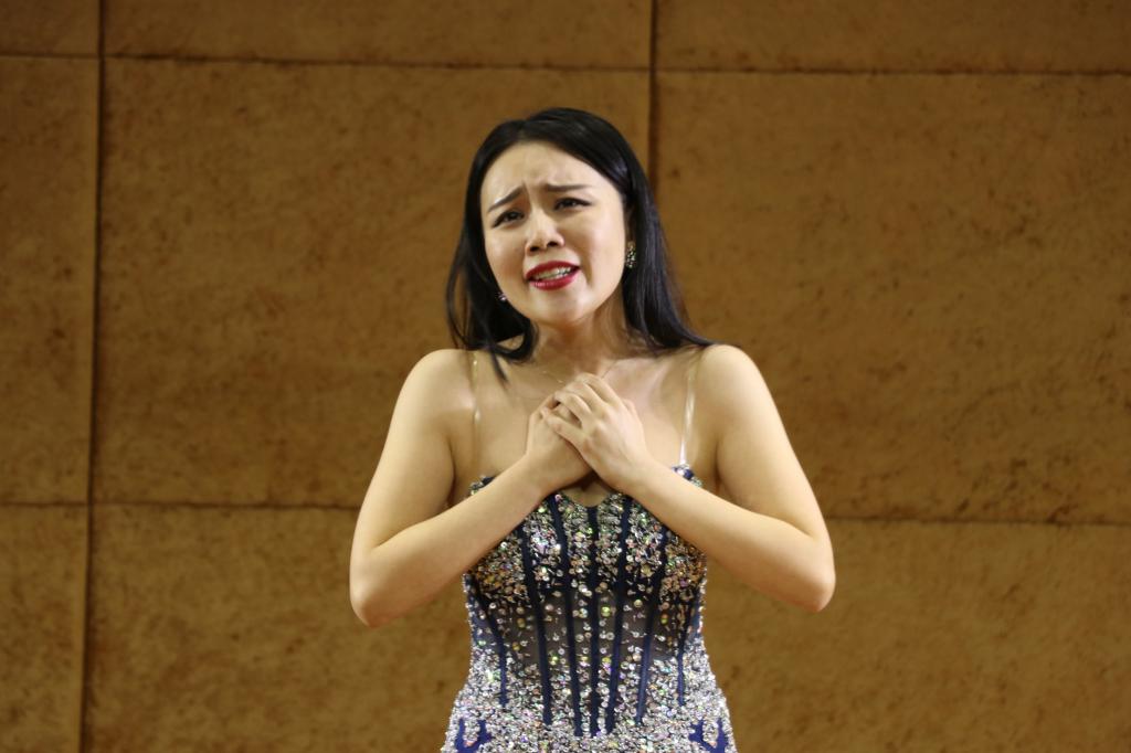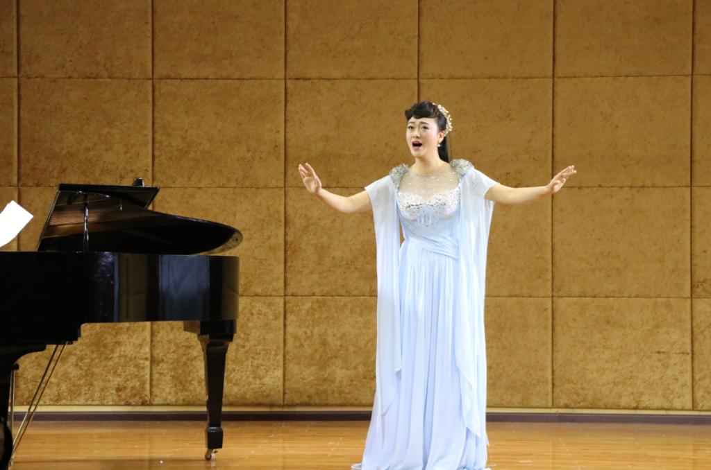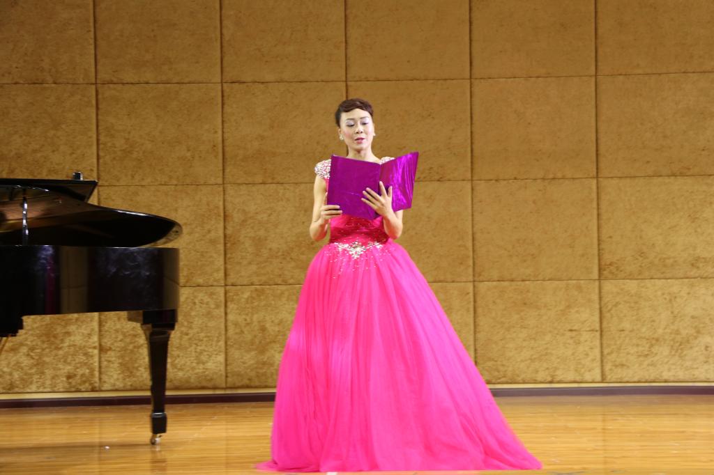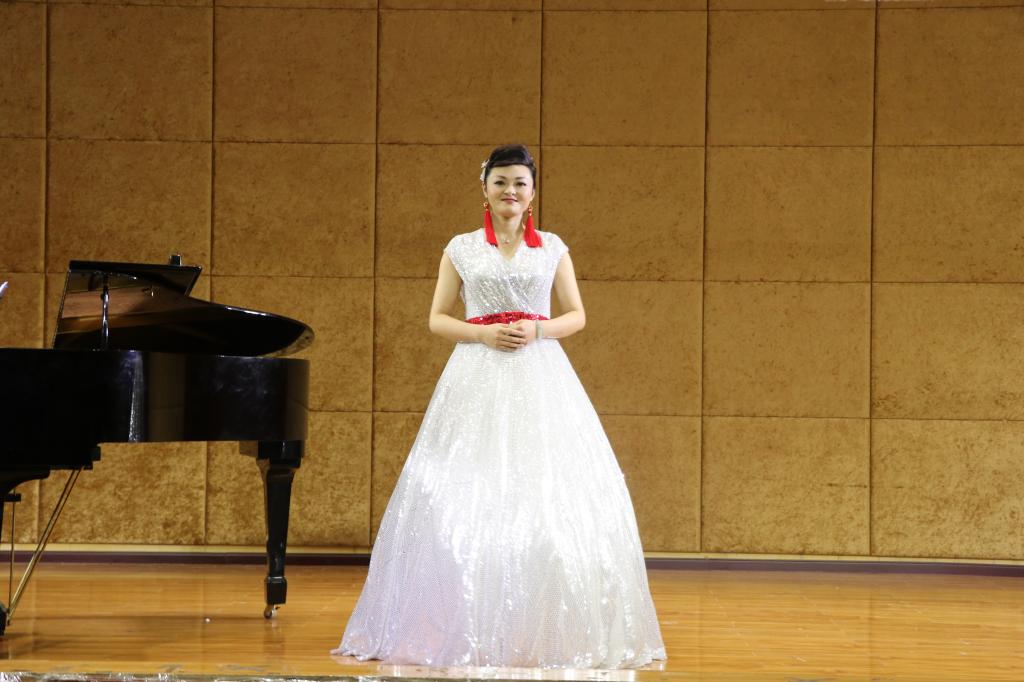 开场是由王晓老师为我们带来的《拾彩贝》和《故乡恋》,歌声悠长婉转,让人不禁陶醉;张黎老师演唱《七律.送瘟神》《包楞调》把音乐会推向高潮;王铎老师带来的《黄鹤楼·送孟浩然之广陵》和《大江南》,让人陶醉在优美的音乐旋律里而“沉醉不知归路”;“东风恶,欢情薄,一杯愁绪,几年离索,错错错”,何晶老师的《钗头凤》演唱情感丰富,让人沉醉在陆游悲伤的爱情故事之中。最后刘昊佳老师以一曲轻快的《青春舞曲》结束了整场音乐会。