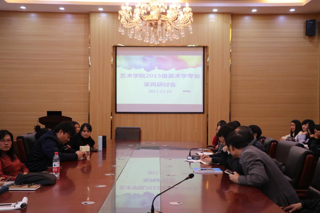 11月14日,艺术学院在会议室召开了2015级美术学专业采风研讨会。艺术学院院长马关辉、院长助理路统宽、美术学科主任段春华、副主任廖江华出席了本次会议,美术学科全体教师以及2015级美术学专业学生参加此次会议。会议由廖江华主持。
