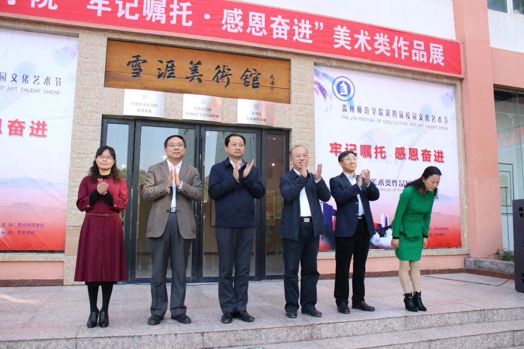 校党委书记石培新致开展辞。他充分肯定了艺术节筹备小组对艺术节的前期筹备工作。他指出,这次艺术节是为了进一步深入学习、宣传、贯彻落实党的十九大精神和响应习近平总书记在贵州代表团座谈会上的讲话精神,充分发挥校园文化活动的育人功能,绽放我校大学生积极向上的精神风貌。最后,石培新宣布,永利集团“牢记嘱托•感恩奋进”第四届校园文化艺术节美术类作品展正式开展。