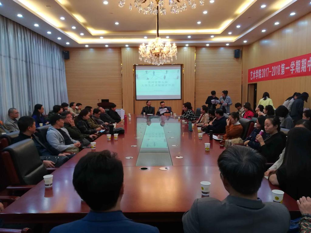 10月28日,贵州省第五届大学生艺术展演评审工作在我校举行。贵州省教育厅体卫艺处处长胡锐、主任科员叶森和来自贵州省各大高校、省音协、省美协、省舞协、省书协、省电视台等单位的五十余名专家和领导参加了评审工作。