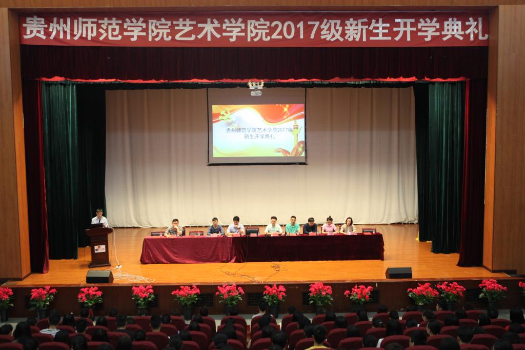 开学典礼在雄壮的国歌声中拉开帷幕。艺术学院院长马关辉对新生表示欢迎并致词。他鼓励同学们“要不忘初心,努力奋斗,通过四年的学习,画出经典的黔山秀水;唱好多彩的美丽贵州;奏响家乡的和谐音律;舞动这片深情的沃土,向养育你们的父母、指导你们的老师、培养你们的母校交一份满意的答卷!”