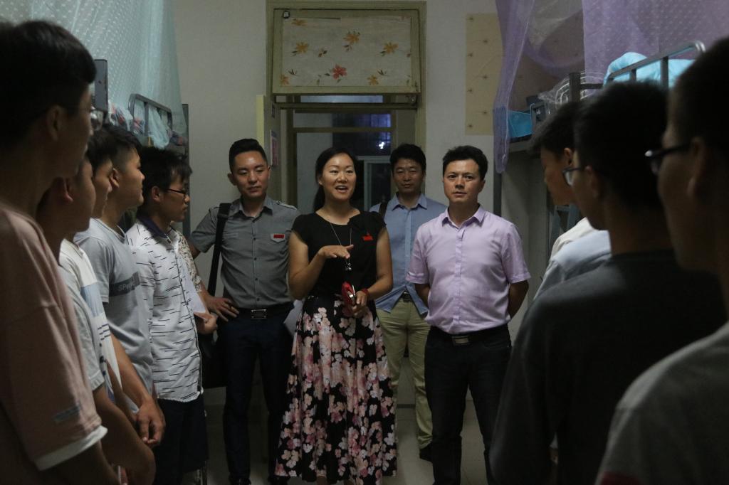 领导老师们每到一个宿舍,都亲切地与新生交谈,仔细询问新生入学后的感受及对新环境的适应状况,及在生活中遇到的困难。付巧强调:学院致力于为新生创造良好的学习、生活环境,希望同学们把宿舍当做家一样来维护,将它建设成一个安全、温馨的场所。马关辉表示:新生要在大学生活学习四年,希望大家可以努力学好专业知识、塑造自己、提升自己。我院领导亲切的问候和语重心长的嘱咐,为新生们带来了家的温暖,宿舍气氛十分热烈。