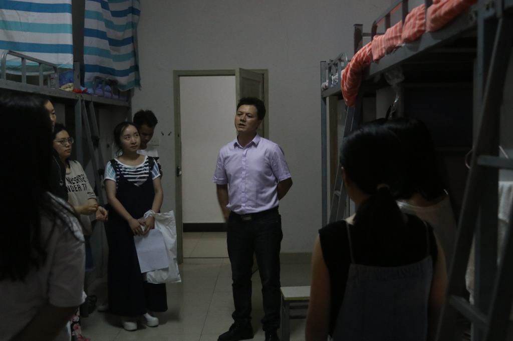 为了解2017级新生对大学生活的适应情况,艺术学院党委书记付巧、院长马关辉、党委副书记朱晨刚以及新生辅导员于8月30日晚走进宿舍慰问2017级新生。