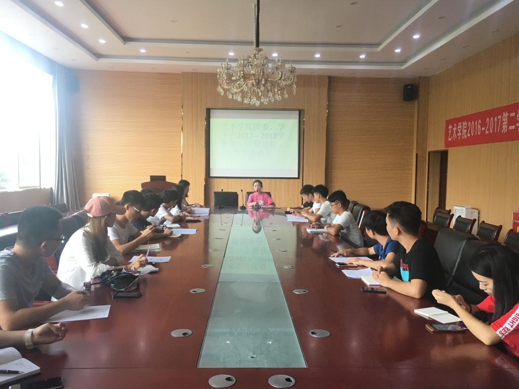 8月23日中午,艺术学院团委、学生会于六楼会议室召开了2017-2018学年第一学期迎新工作部署会议。艺术学院五大学生组织主要负责人参会,会议由团委书记舒然主持。