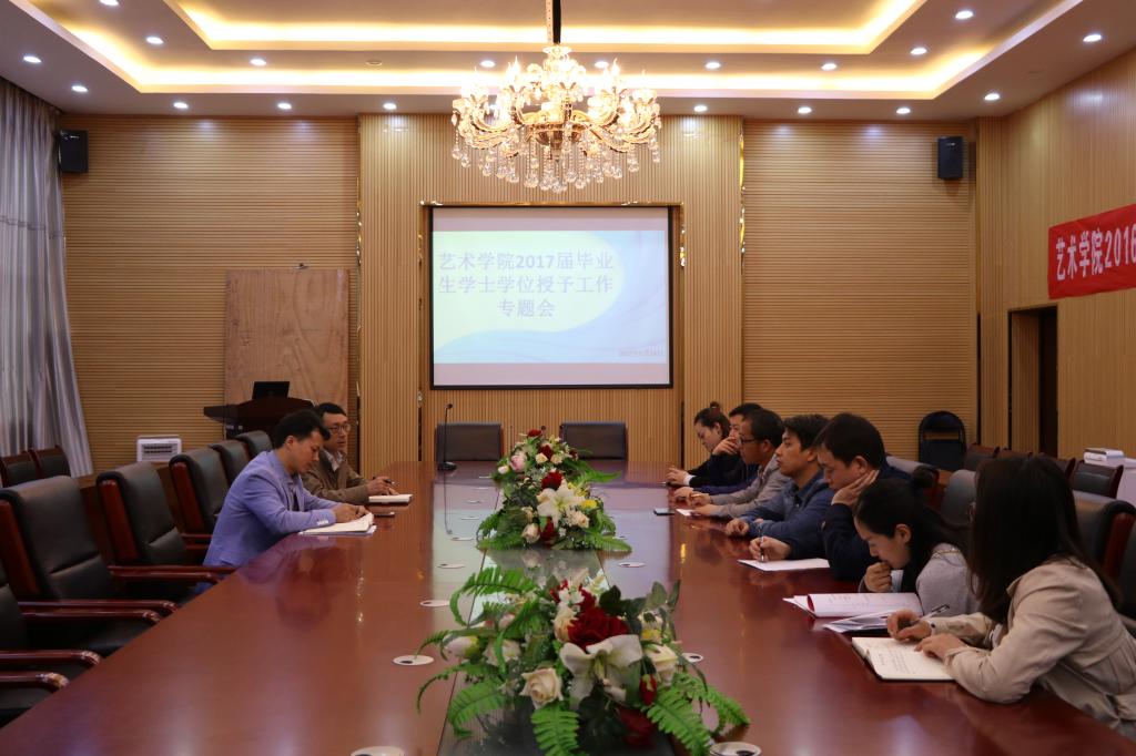 5月24,艺术学院在六楼会议室召开2017届毕业生学士学位授予工作专题会会议。艺术学院院长马关辉、院长助理路统宽和2013级的专职辅导员参加了此次会议。