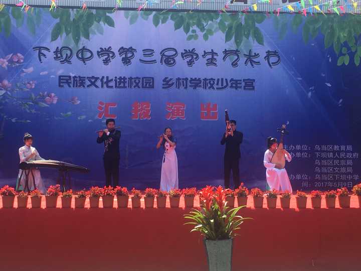 5月9日,艺术学院团委书记舒然带领2016级音乐学、舞蹈学专业的12名同学前往乌当区下坝中学参加该校第三届文化艺术节文艺汇演活动,并取得圆满成功。