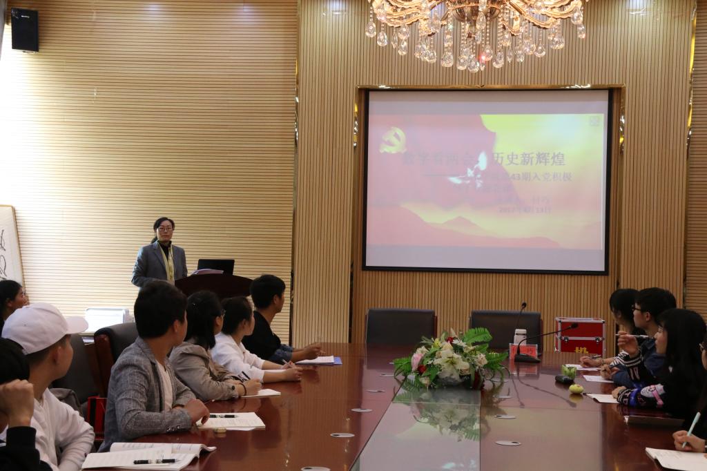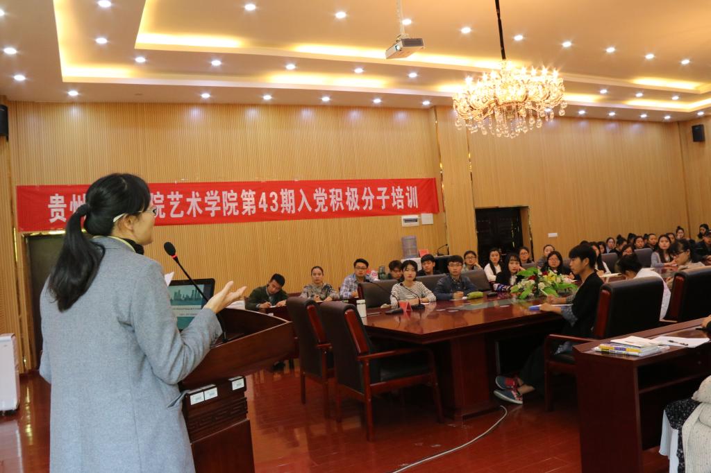 4月13日中午,艺术学院第43期入党积极分子集聚会议室进行专题培训讲座,此次讲座由艺术学院党委书记付巧担任主讲人。