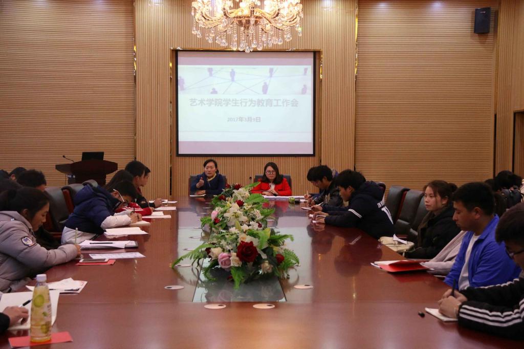 3月9日,艺术学院在学院会议室召开学生行为教育大会。艺术学院党委书记付巧、专职辅导员谭娇艳出席了本次会议,学生党员、入党积极分子、各班班长、团支部书记、纪律委员参加了会议。会议由付巧主持。