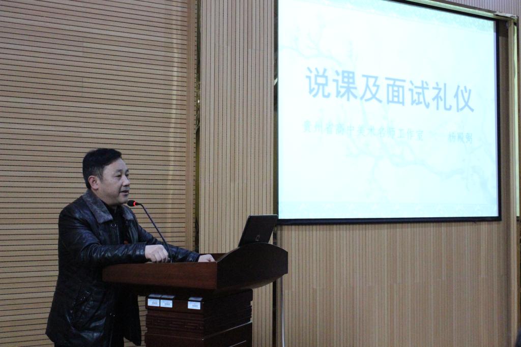 3月8日,艺术学院特邀贵州省高中美术名师工作室主持人杨殿弼老师在艺术学院会议室做《说课及面试礼仪》讲座。讲座由艺术学院院长马关辉主持。