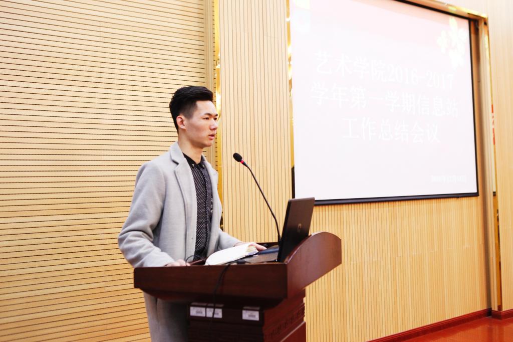 12月14日,艺术学院在学院会议室召开了2016—2017学年第一学期信息站工作总结会议。艺术学院教学督导路统宽、团委书记舒然出席了本次会议。会议由信息站站长刘旭东主持。