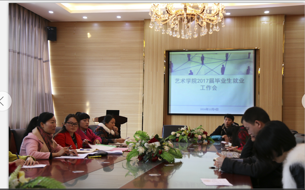 12月9日,艺术学院全体专职辅导员在学院会议室召开2017届毕业生就业工作会议。会议由艺术学院党委书记付巧主持。
