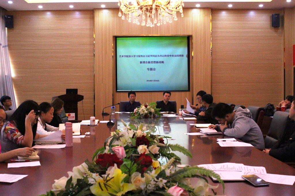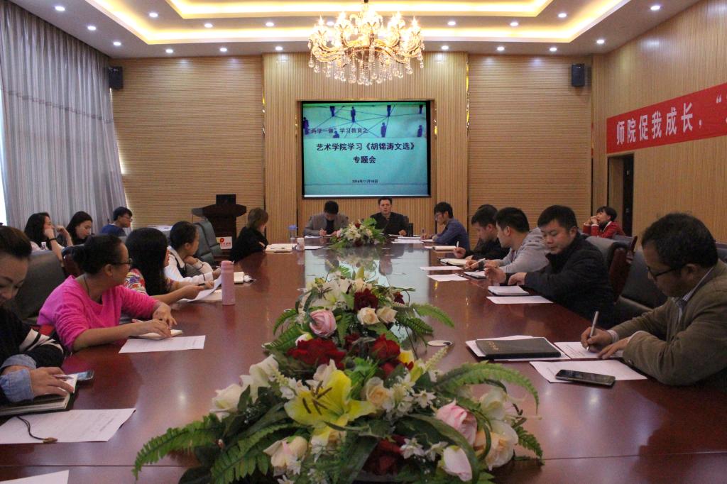 11月18日,艺术学院教职工在学院会议室开展了“关于在‘两学一做’学习教育中深入学习胡锦涛文选”,“深入学习宣传以习近平同志为总书记的党中央治国理政新理念新思想新战略专题会”专题学习会。会议由办公室主任、基层纪检委员宋建强主持。宋建强宣读了学校关于学习系列文件的要求并对文件内容进行了解读。