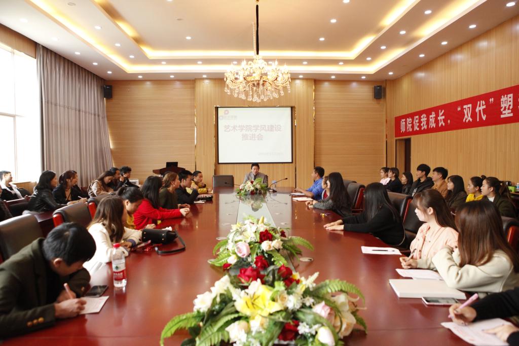 11月16日,艺术学院在学院会议室召开“艺术学院学风建设推进会议”,2014级音乐班全体同学参加了此次会议,会议由党委副书记朱晨刚主持。