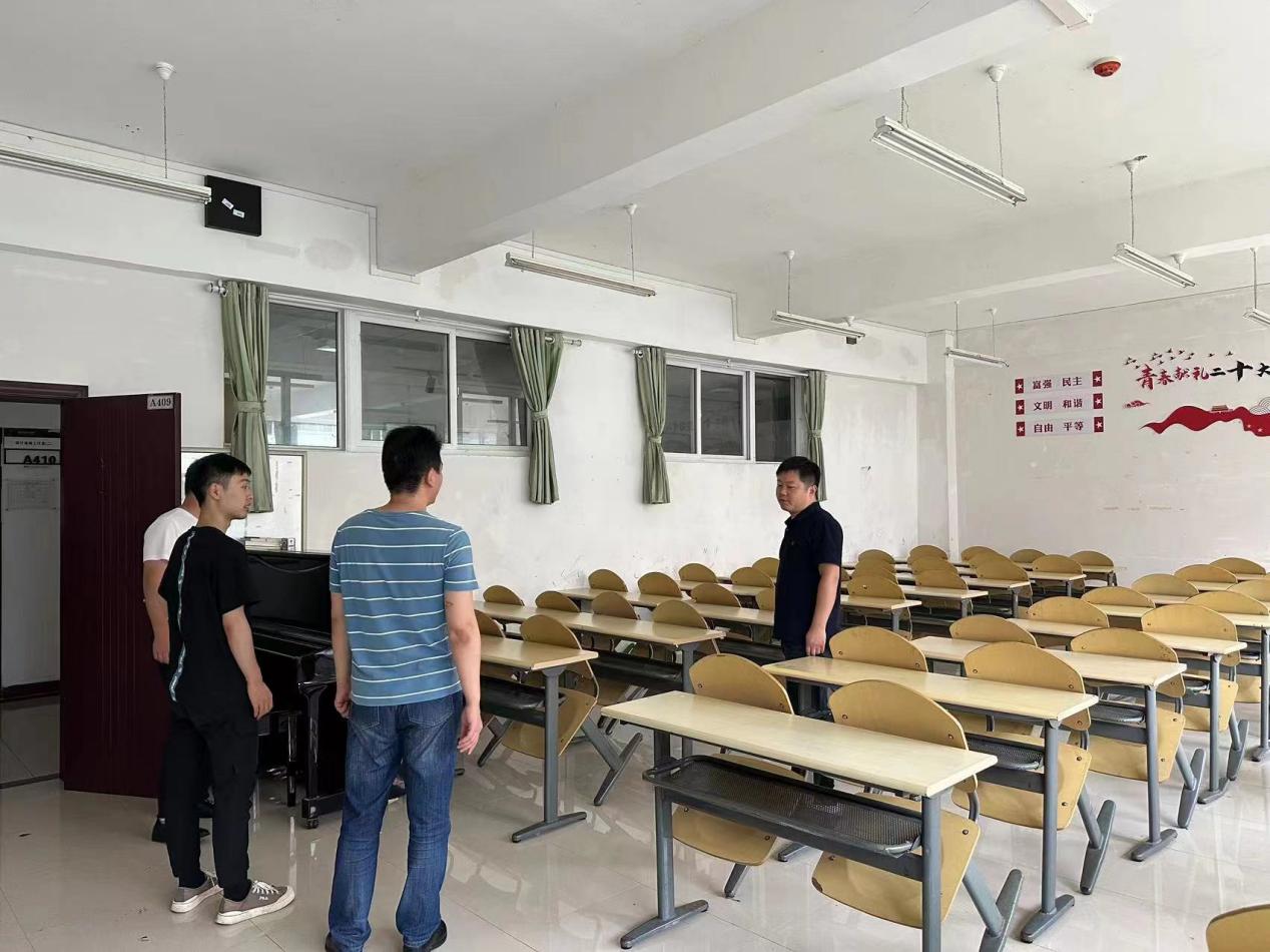 新学期如约而至,为防范风险,确保学院各实训室、教室安全运行,按照学院安全工作部署,8月21日下午,由学院党委副书记朱晨刚、副院长王晓带队,教学管理科科长刘科,实验员邹力征,青年教师龚卓组成检查组,对学院所有实训室、教室及公共区域的安全及卫生情况进行了集中大检查。