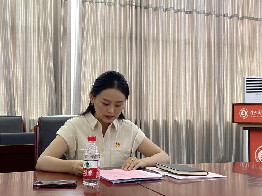 舒然代表支部进行表态发言。她表示将进一步发挥支委龙头作用,坚持学思用贯通、知信行统一,努力教育引导支部全体党员自觉统一思想、统一意志、统一行动,力争在以学铸魂、以学增智、以学正风、以学促干方面取得实效,为学院高质量发展贡献青春力量。