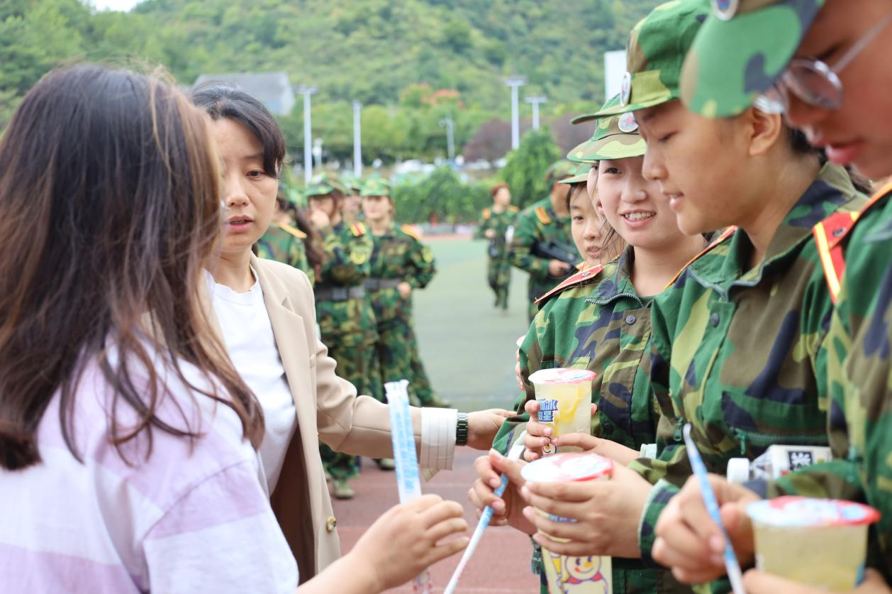 最后,师生给军训同学们送上慰问品。