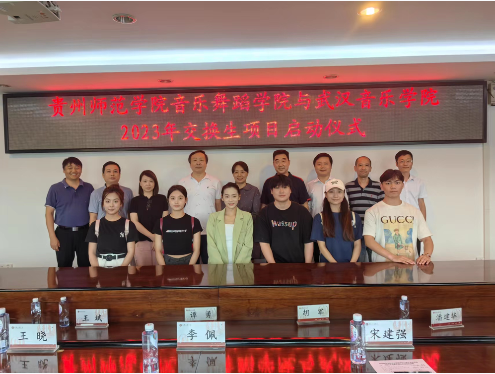 为持续做好我校与武汉音乐学院的帮扶工作,推动相关专业高质量发展,2023年9月18日-19日,我校77779193永利官网集团党委书记李佩一行赴武汉音乐学院开展2023年交换生项目启动仪式。武汉音乐学院副校长谭勇、教务处处长胡军、学工部(处)处长王斌、后勤基建管理处处长潘建华、舞蹈系系主任李文蓓、音乐教学学院党总支书记谢筠、教务处副处长朱汉斌;77779193永利官网集团党委书记李佩、副院长王晓、副处级组织员宋建强以及六名交换生参加了启动仪式。