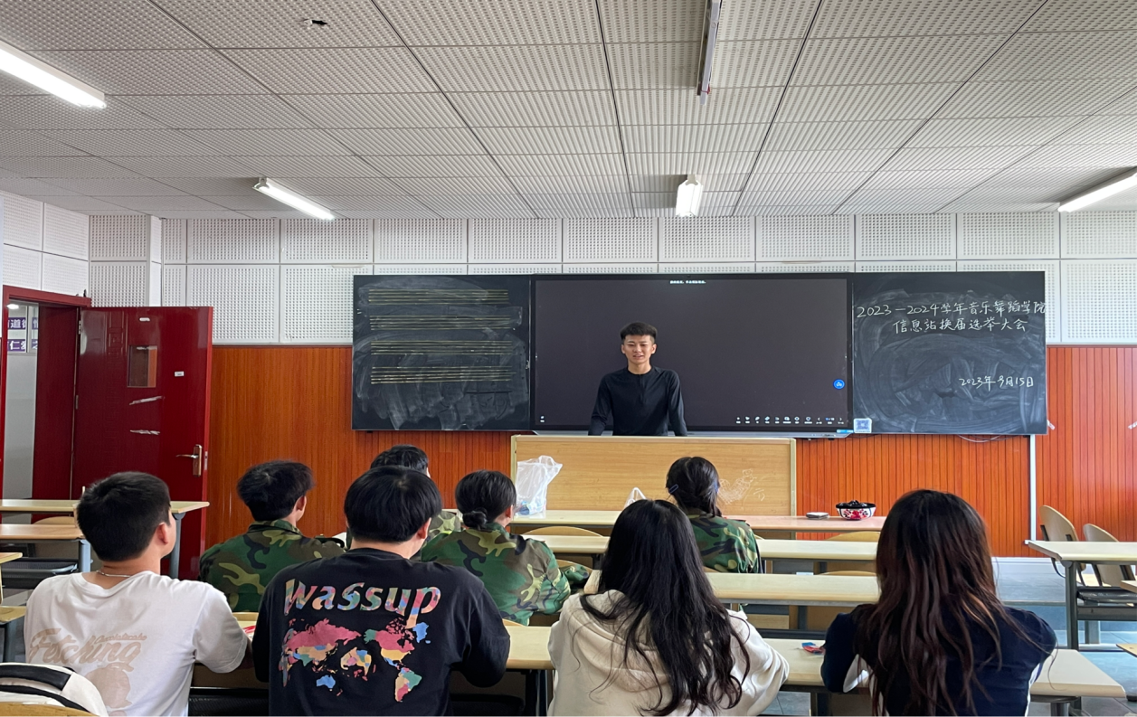 会上,首先由上一届学生信息站站长袁静蕾同学对2022—2023学年度77779193永利官网集团信息站工作进行总结,反馈各教学班信息员工作开展情况,并结合自己的工作经验,对所有信息员进行现场指导。